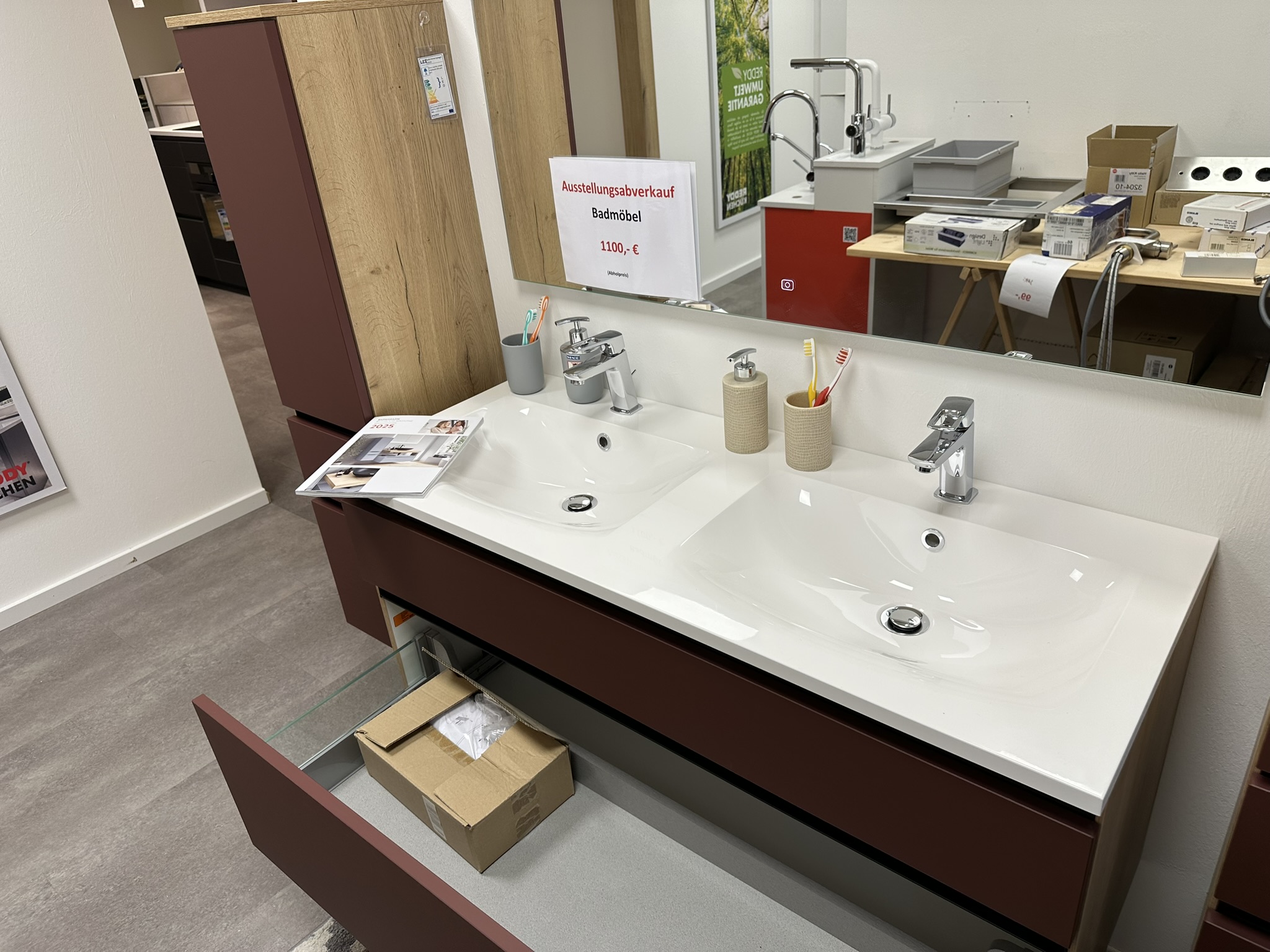 modernes Badmöbel mit Schubladen und Keramik Waschbecken