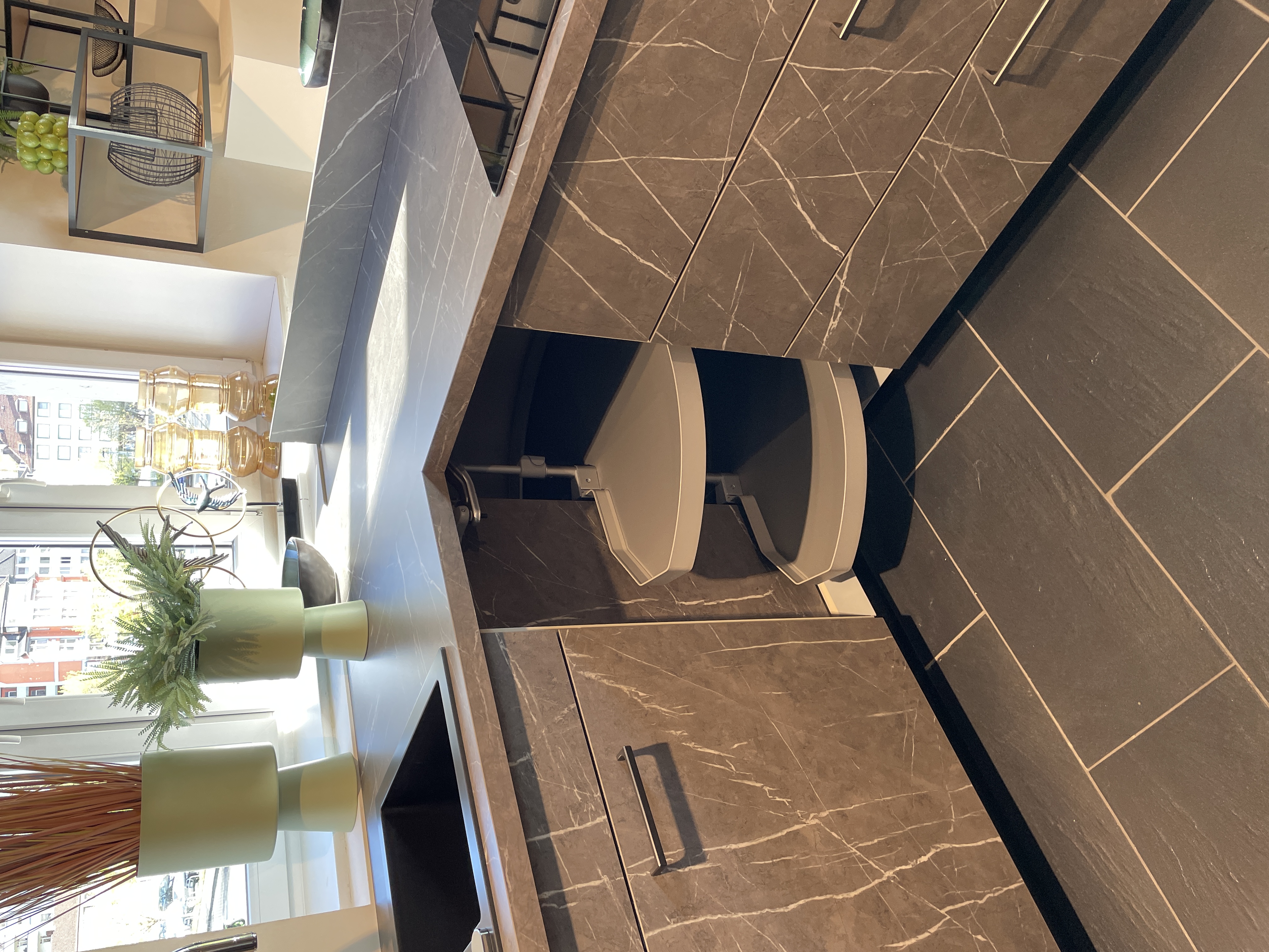 Diese Küche begeistert durch eine Vielzahl intelligenter Details, die man nicht auf den ersten Blick erwartet – und genau deshalb so schätzt. Bereits der Zugang überrascht: Eine nahezu unsichtbare, perfekt integrierte Tür führt direkt in den Hauswirtschaftsraum und sorgt für ein ruhiges, aufgeräumtes Gesamtbild.