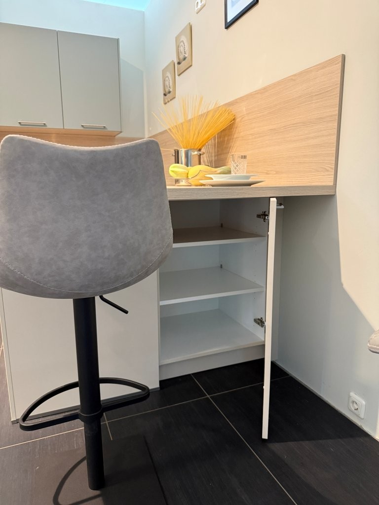 Ohne Geräte, Deko und Stühle – Elektrogeräte sind auf Wunsch erhältlich.