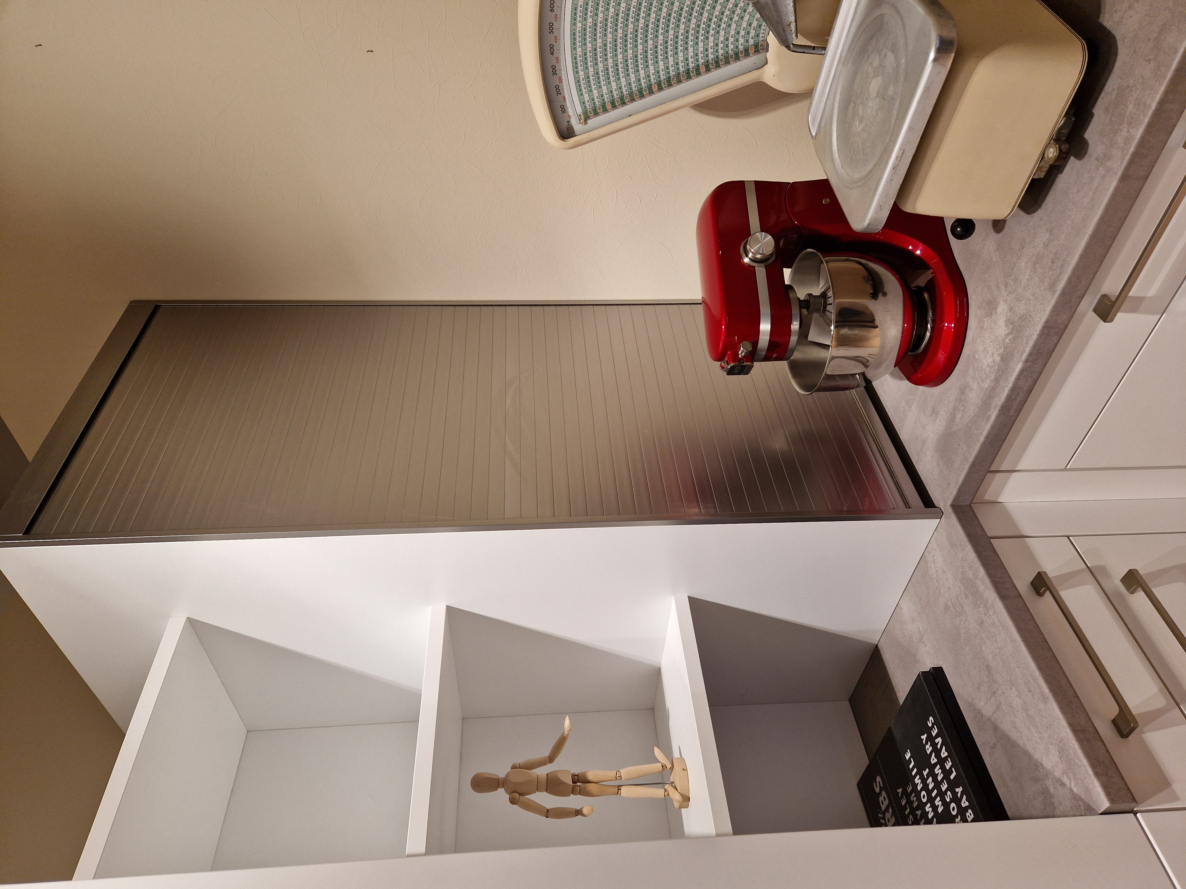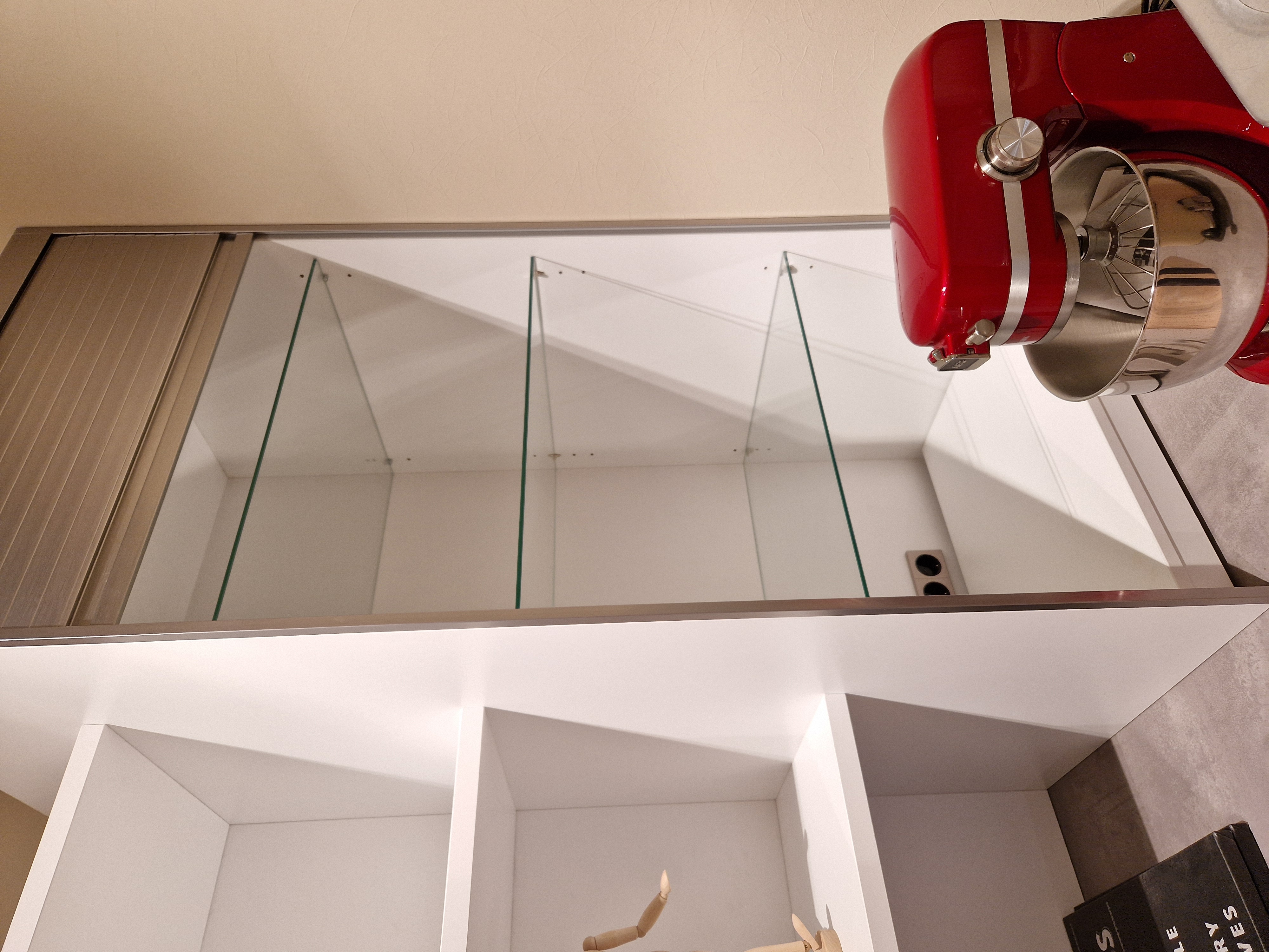 - Rollladenaufsatzschrank mit Glasböden und Auszugstablar z.B. für Kleingeräte