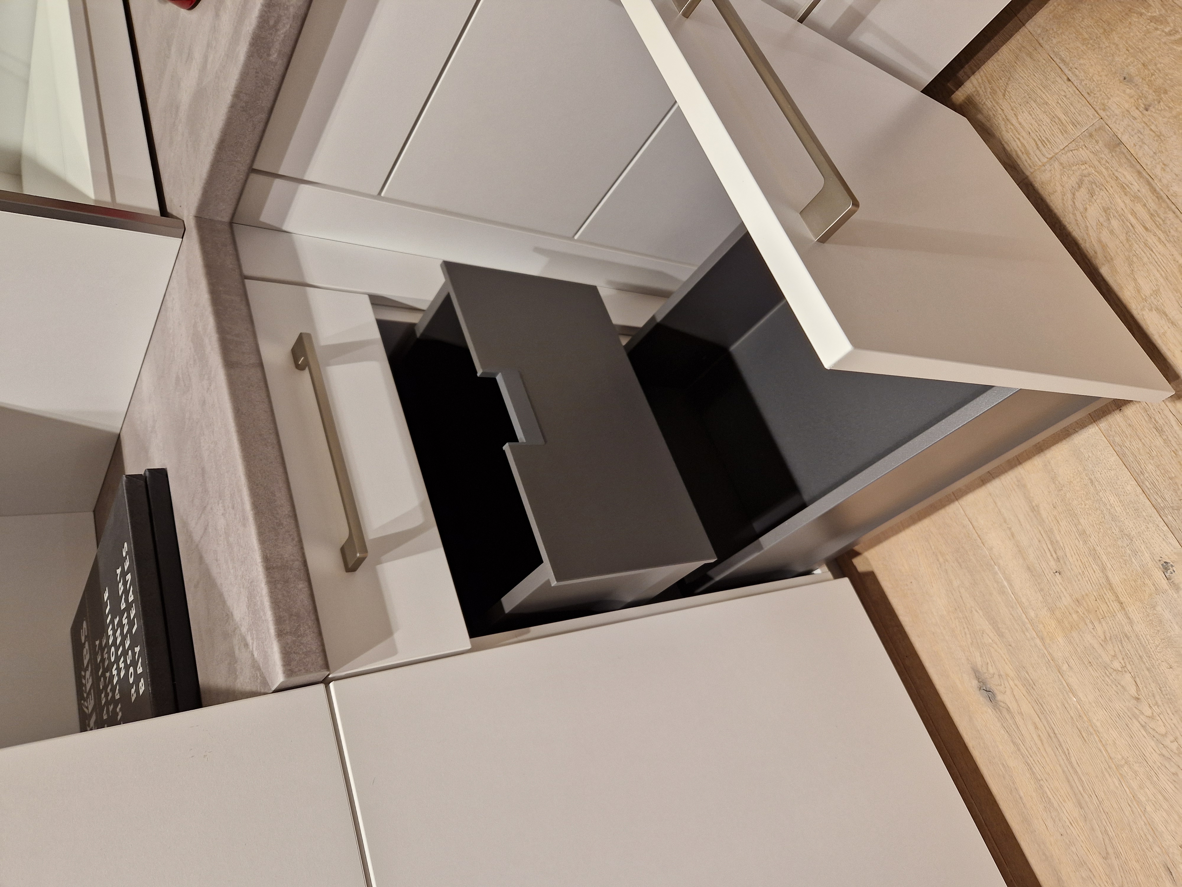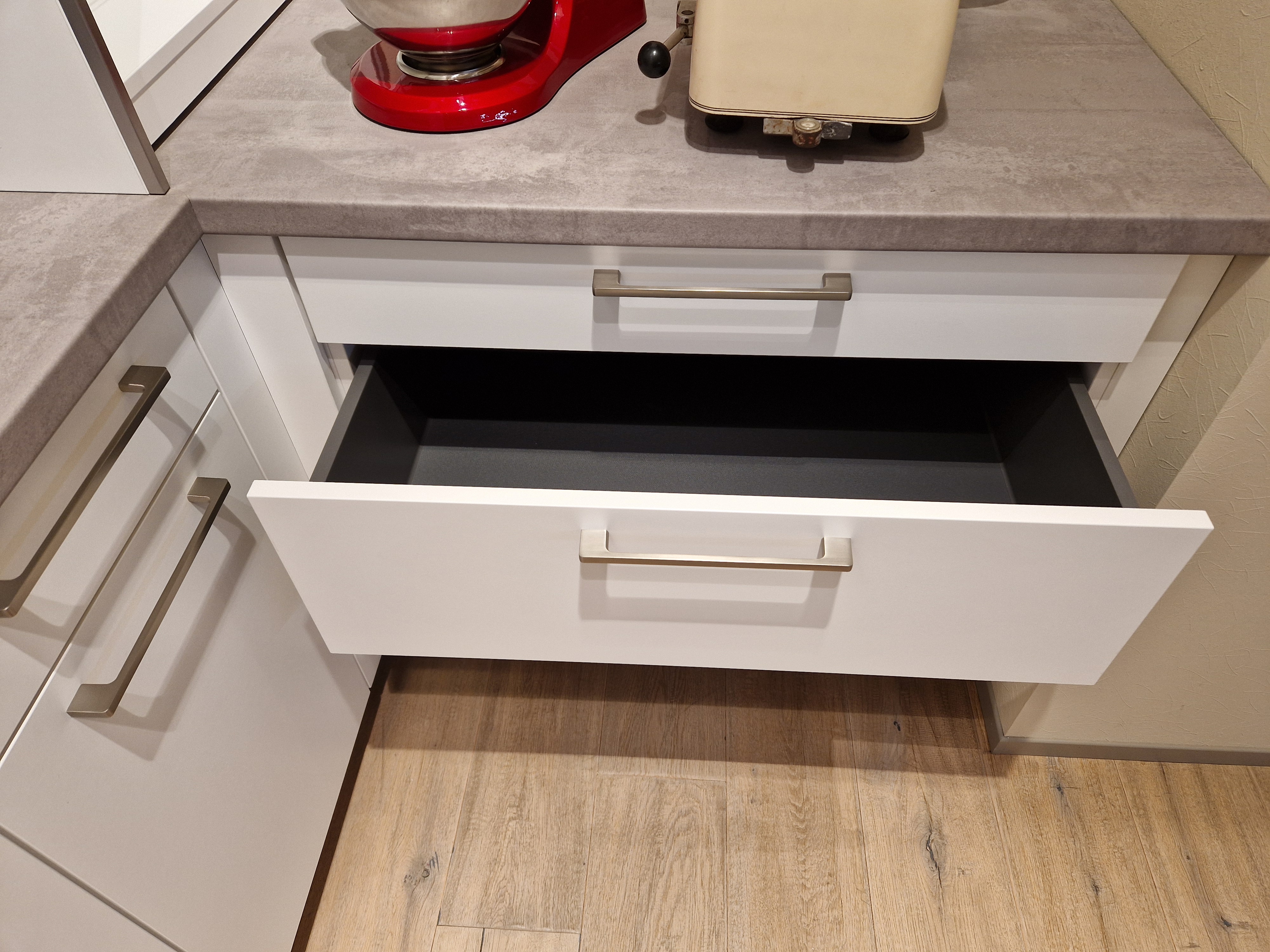 - Arbeitsplattenfarbe: Spachtelbeton Perlgrau