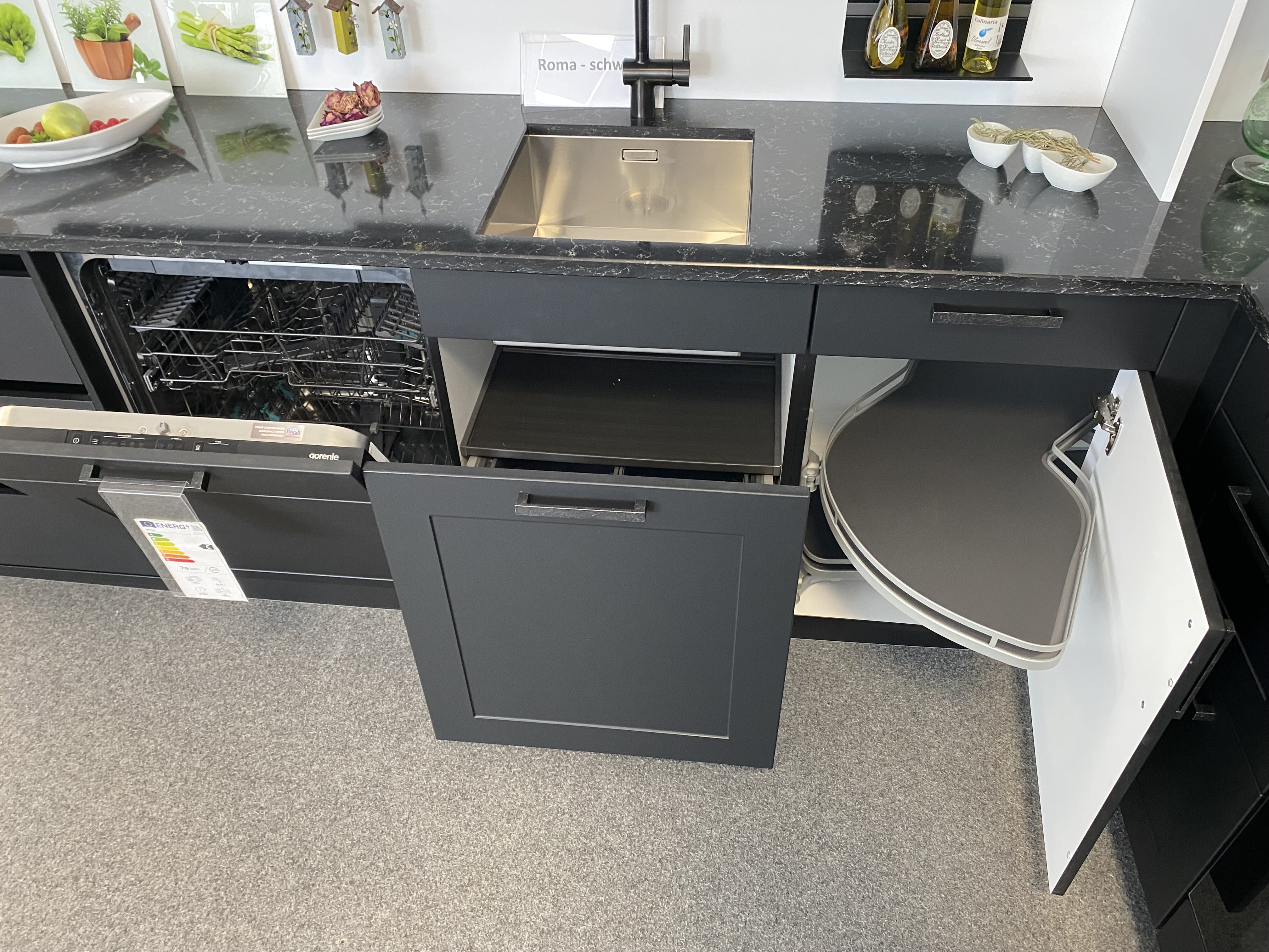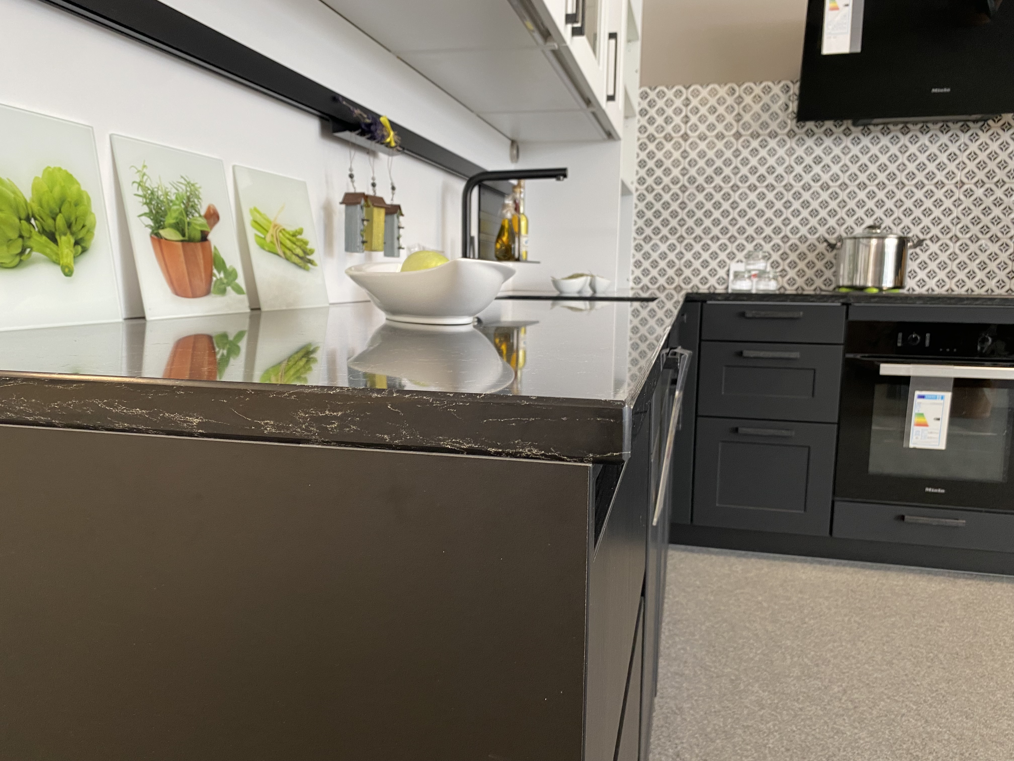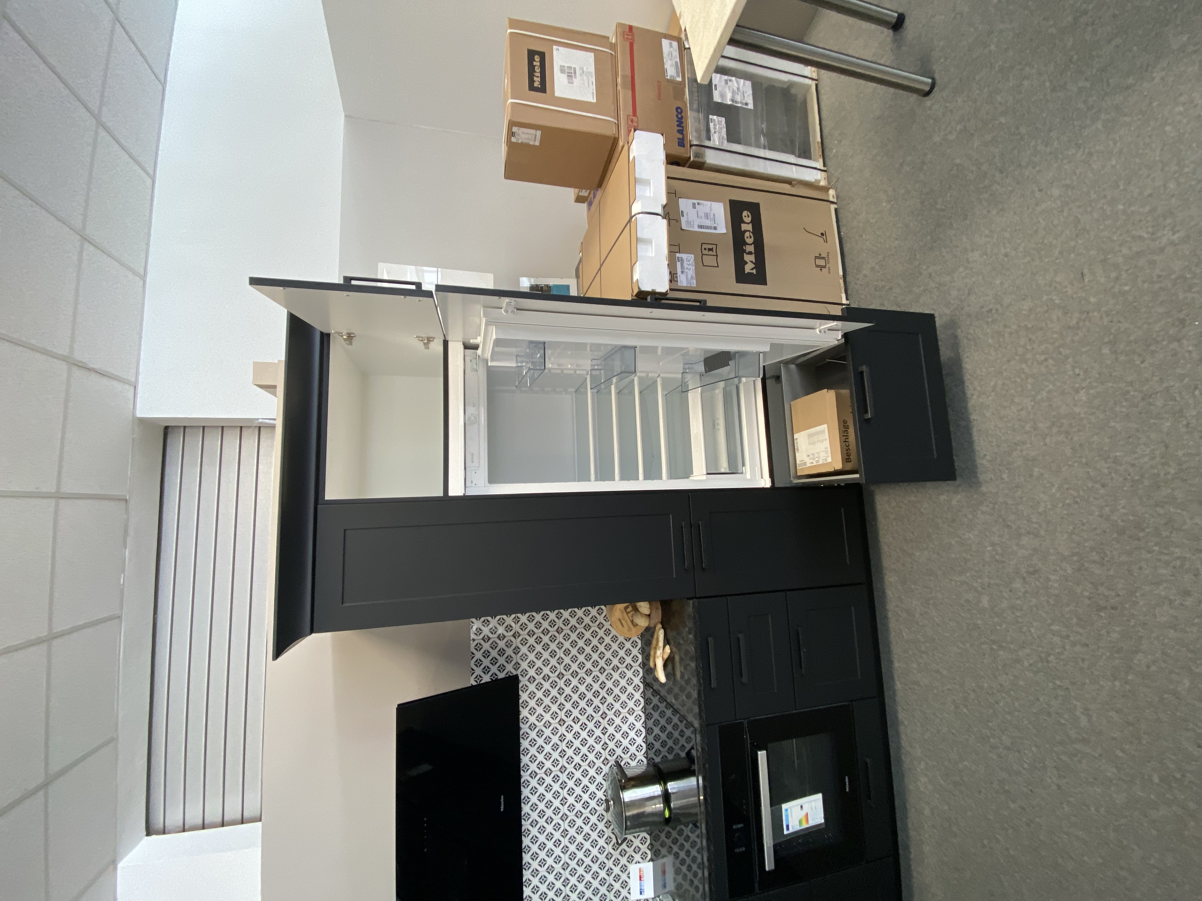Die Geräte sind von der Firma Miele und Gorenje. Die Spüle und Armatur von Blanco.