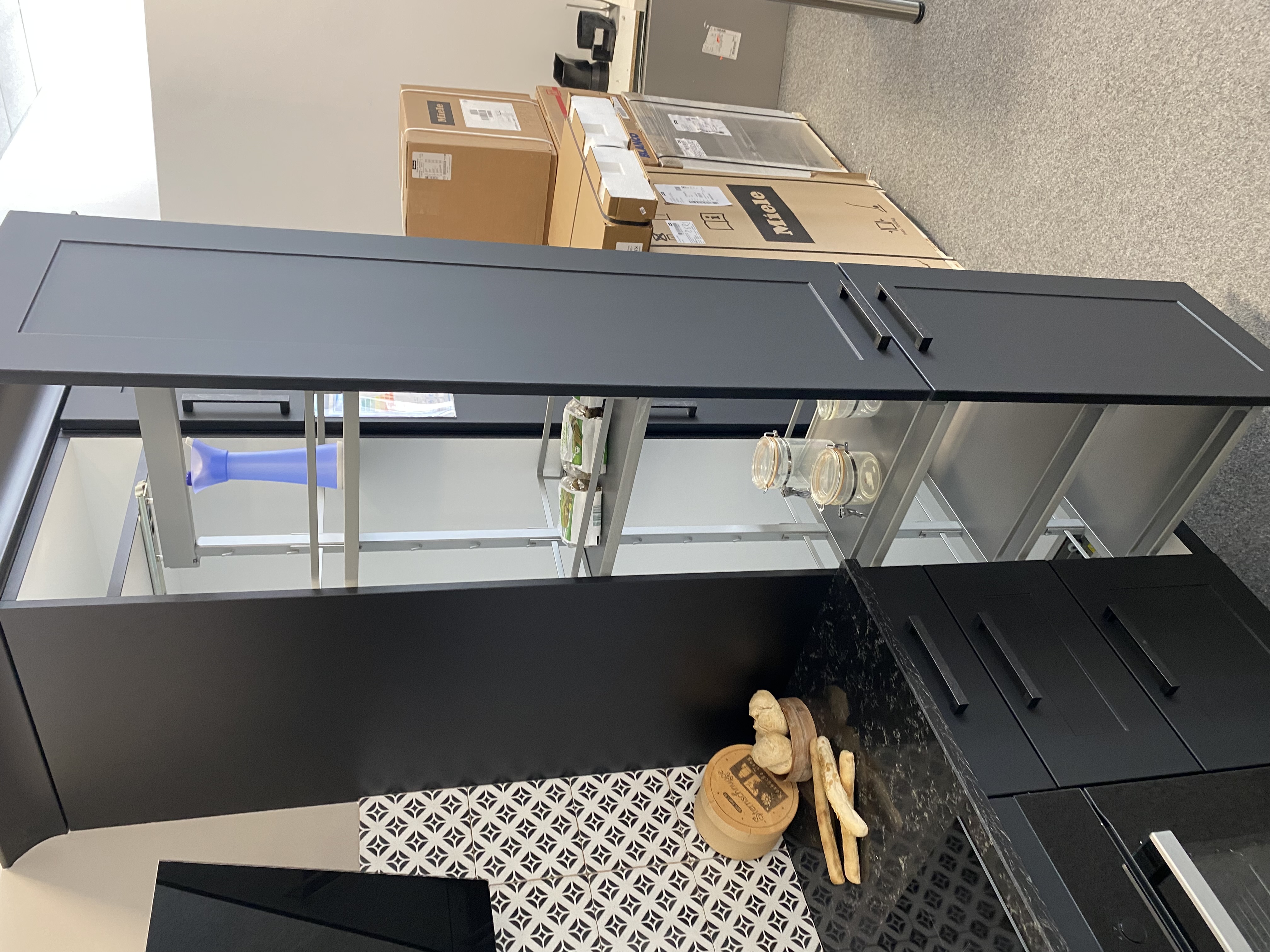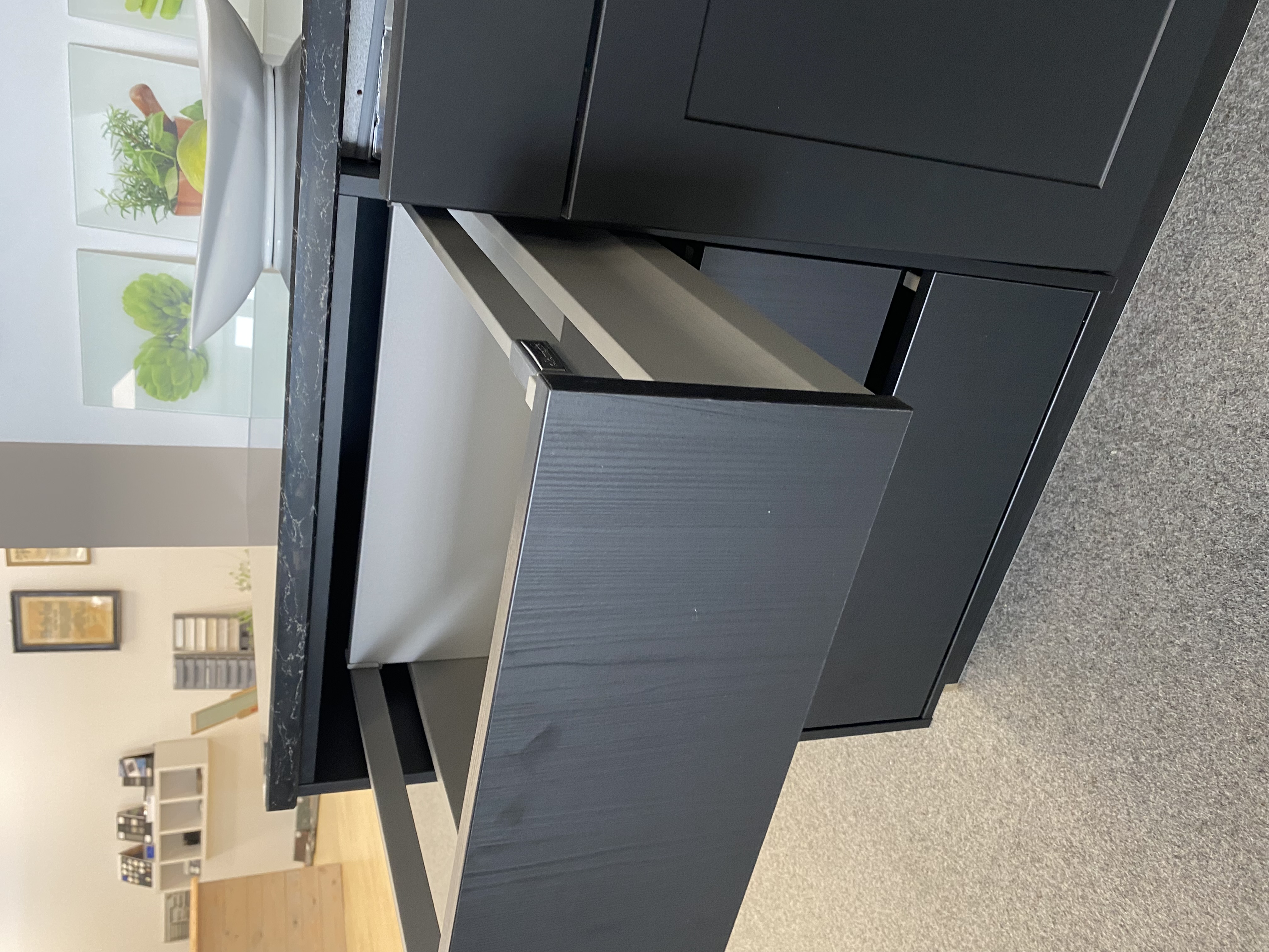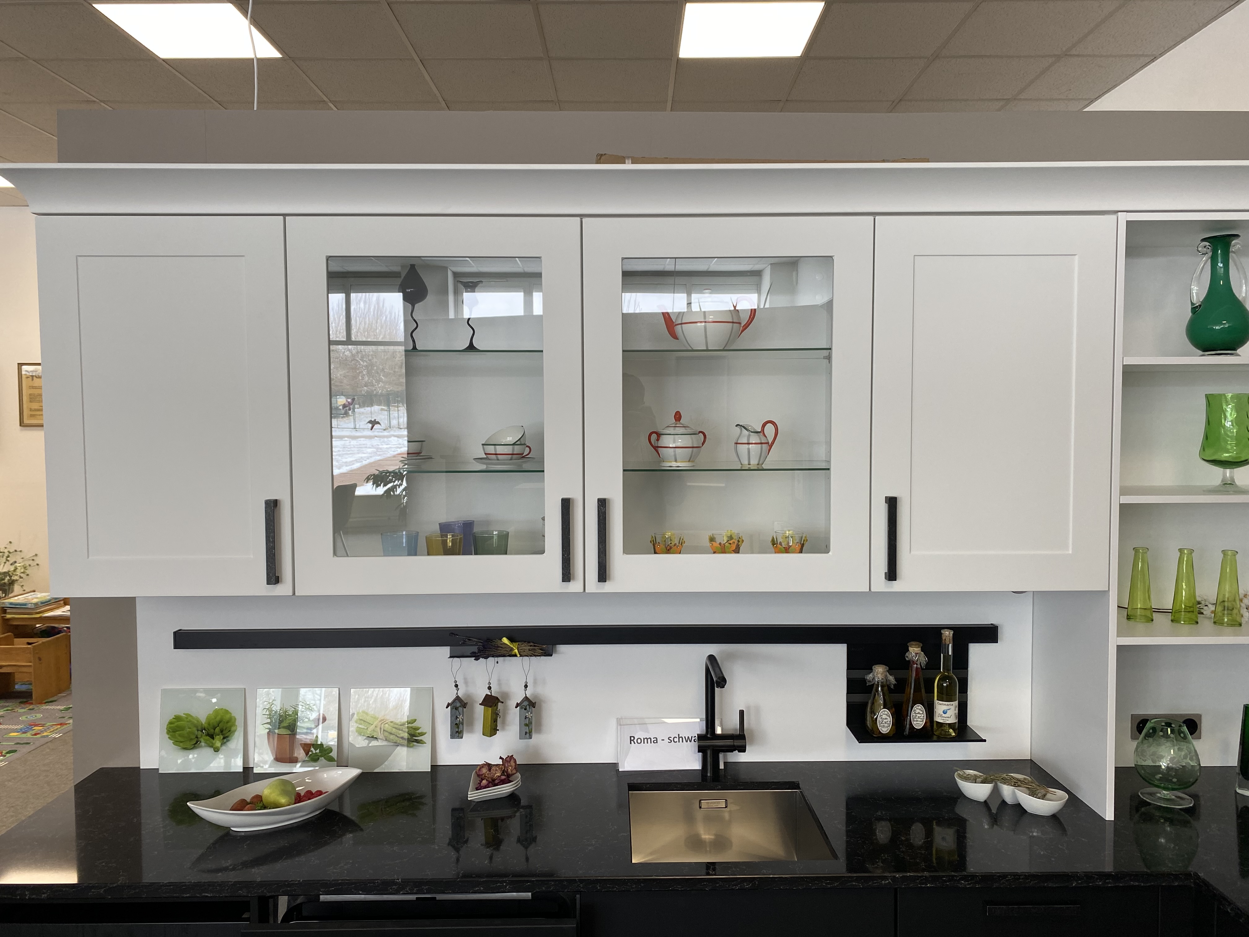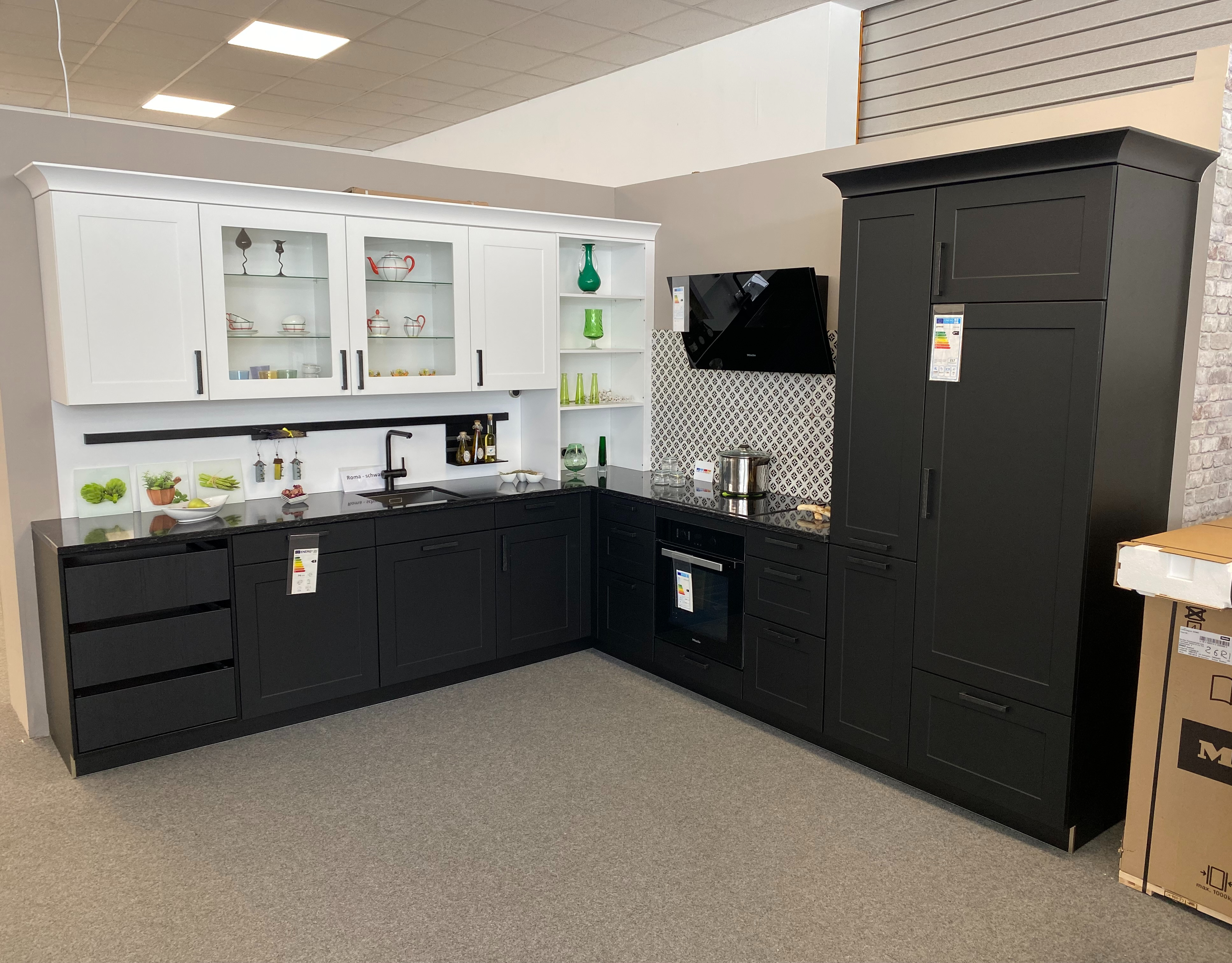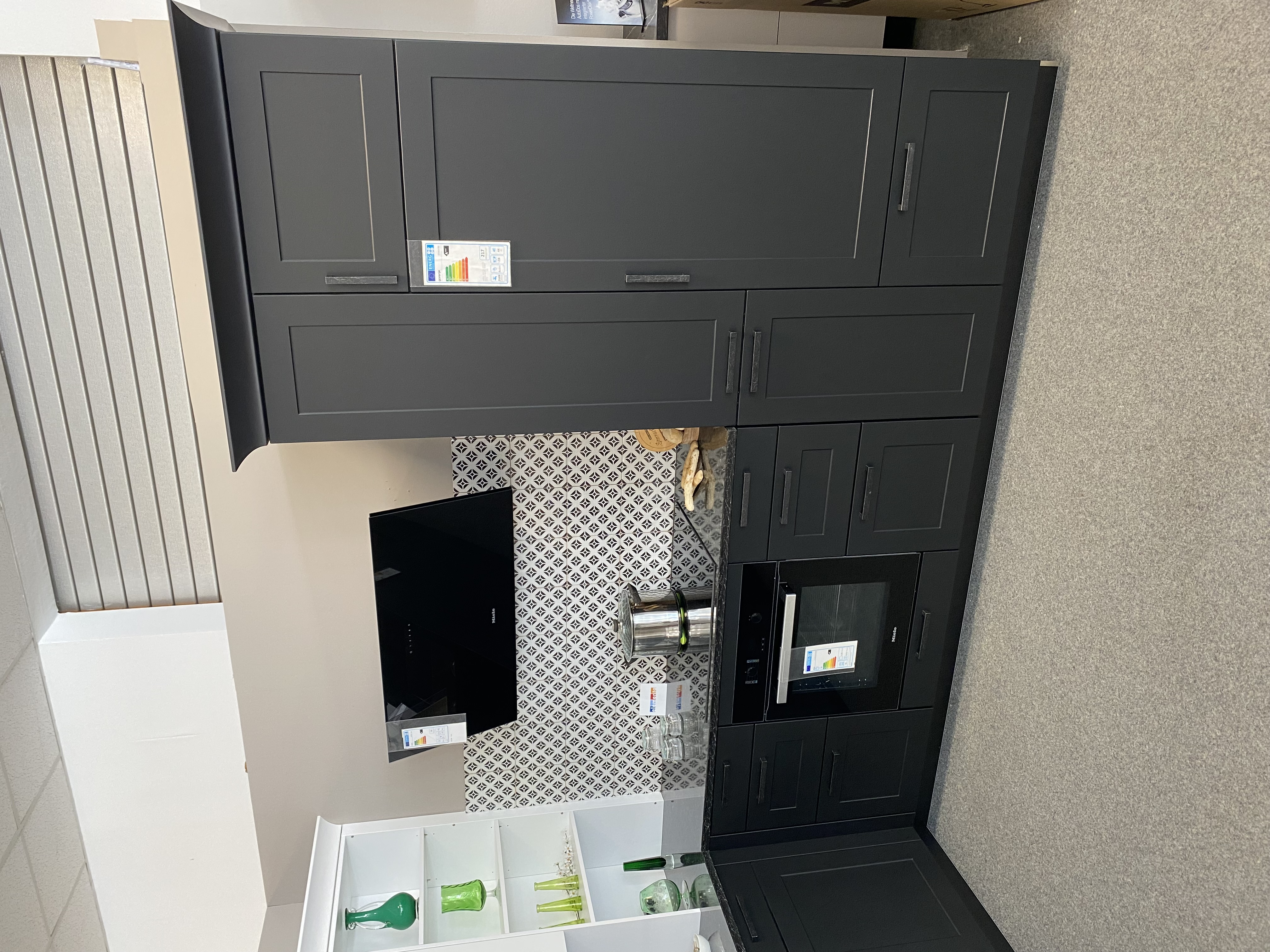 Wir verkaufen eine Musterküche im L-Form. Die Küche ist von der Firma Häcker und sehr hochwertig in der Verarbeitung.