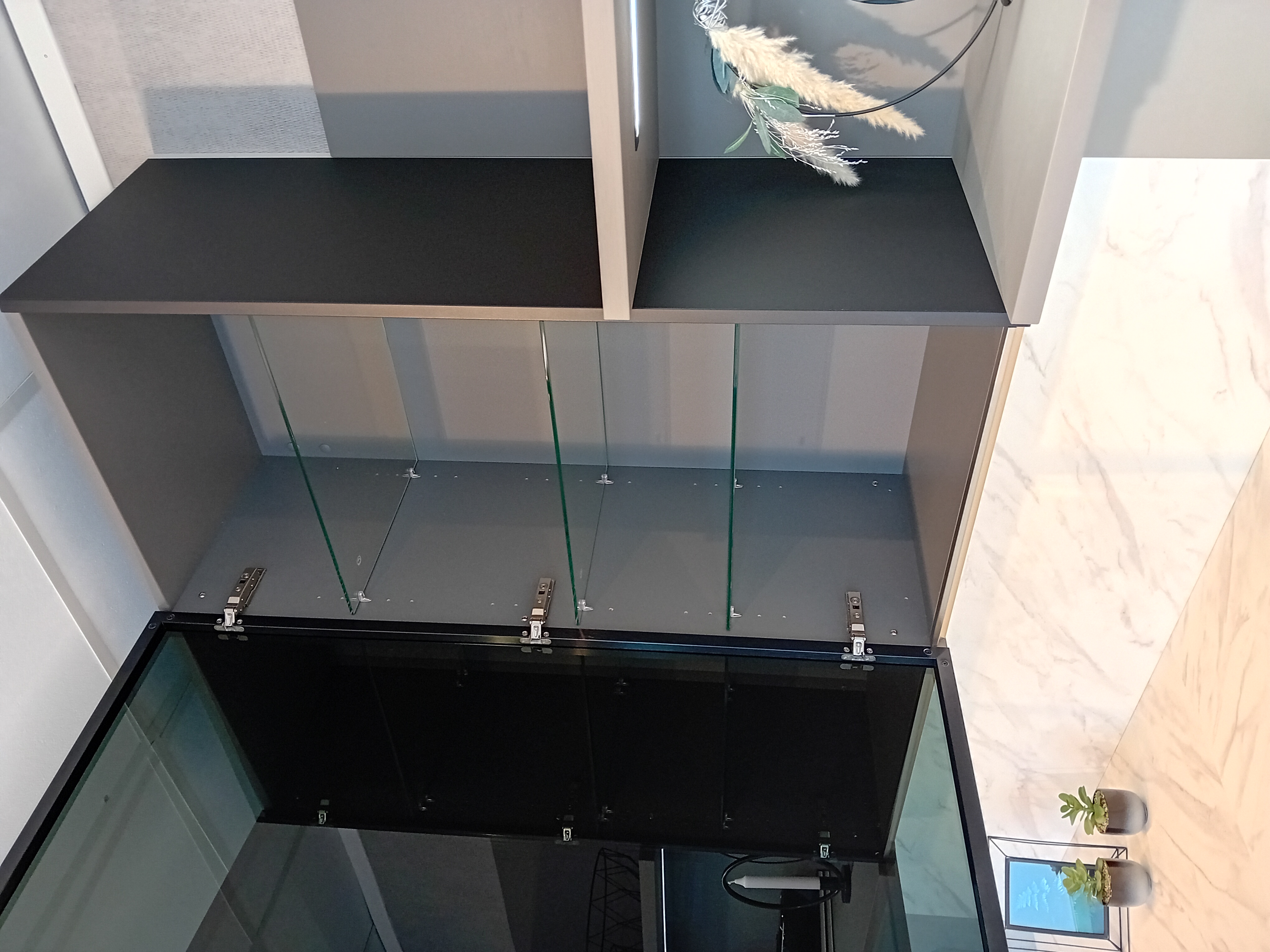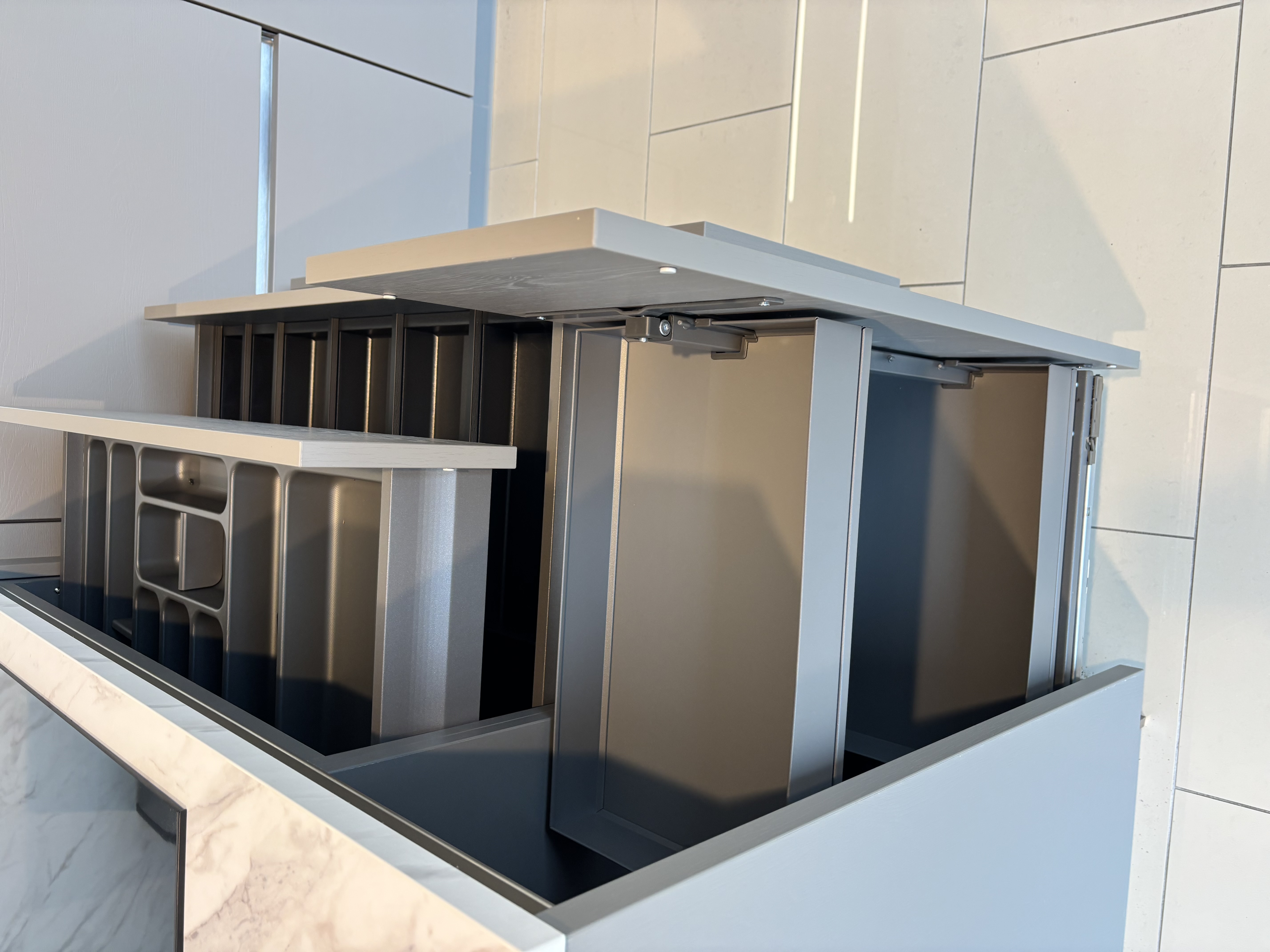 eigefrästen Beleuchtungen einen modernen Touch, der durch die hochfahrbare Glasdraft-Haube noch einmal verstärkt wird.