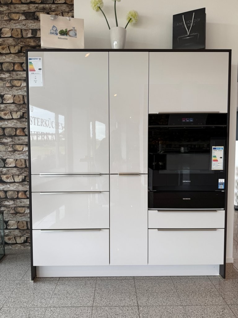 Fronten: Hochglanz Satin in elegantem Design, mit aufgesetztem Griff in Edelstahloptik