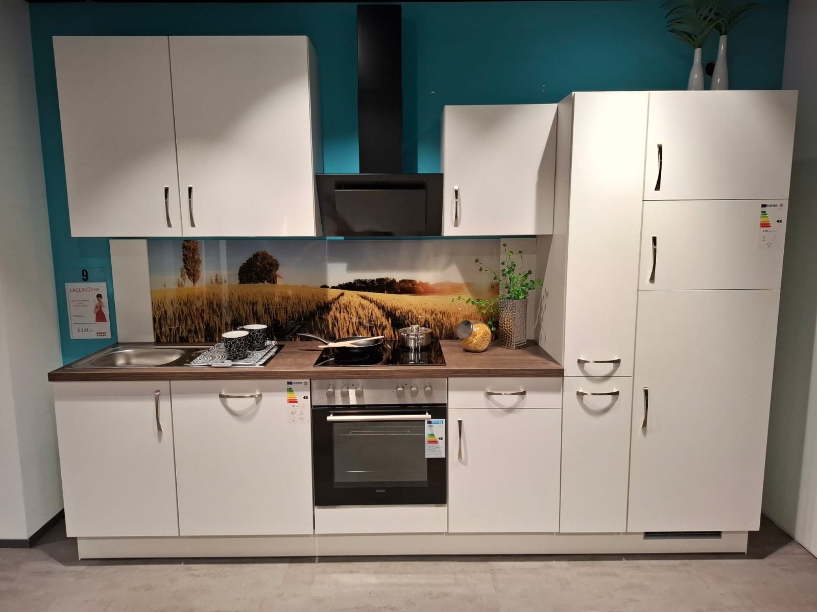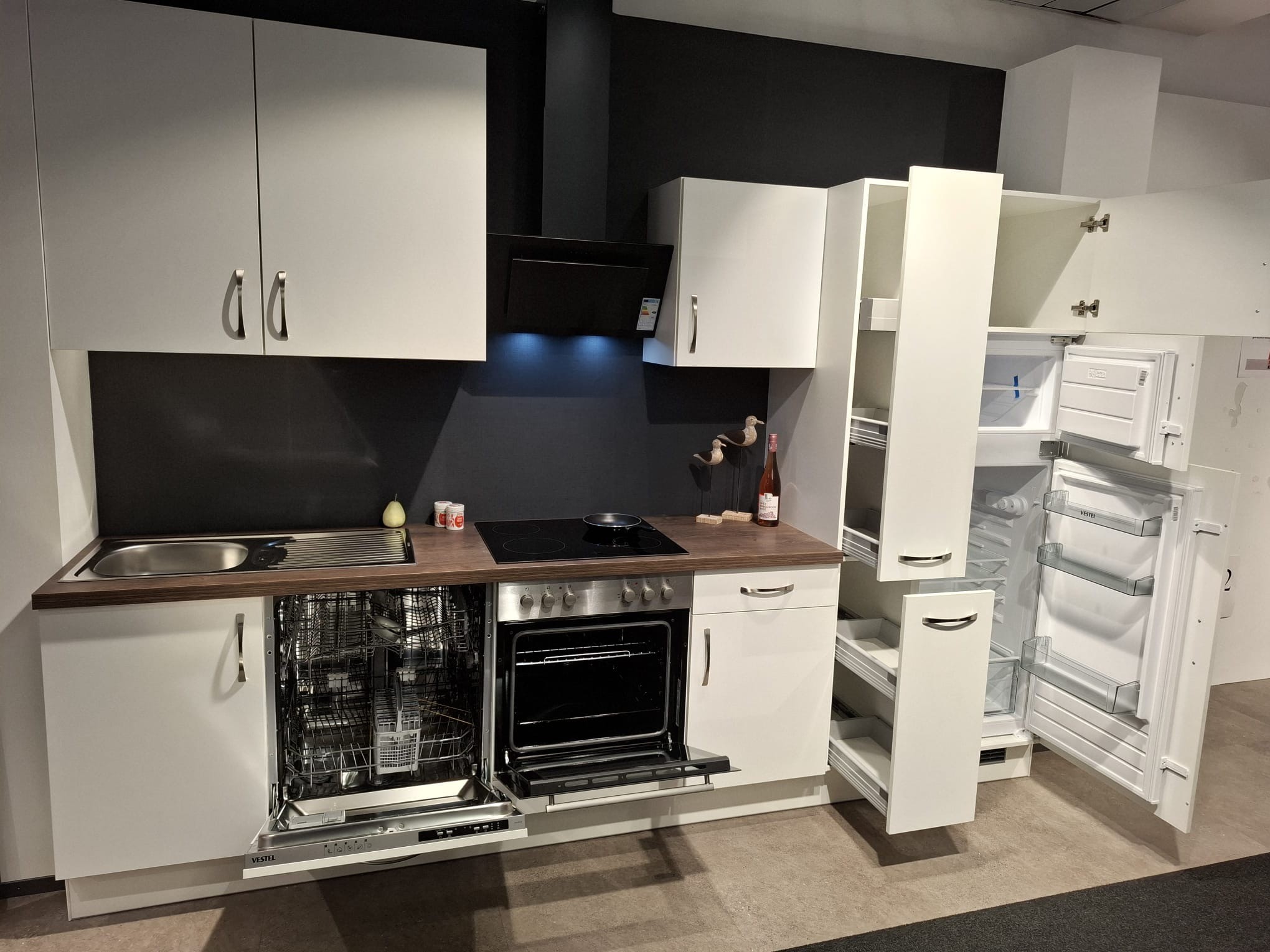 komplette Küchenzeile mit Herd, Kochfeld, Dunstabzug "kopffrei", Kühl/Gerfrierkombi und Spülmaschine