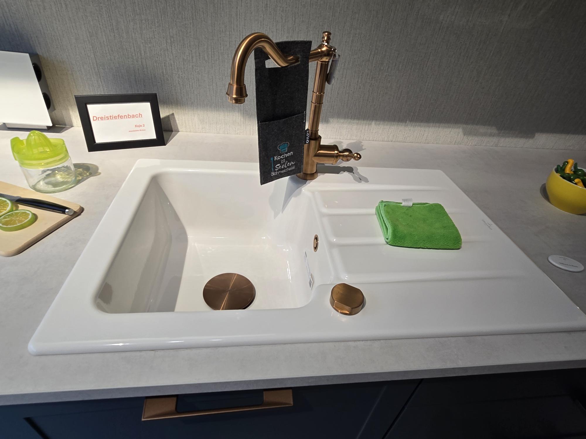Mit Keramikspüle von V&B kupferfarbene Akzente Auszugstisch Glashängeschränke in XL
