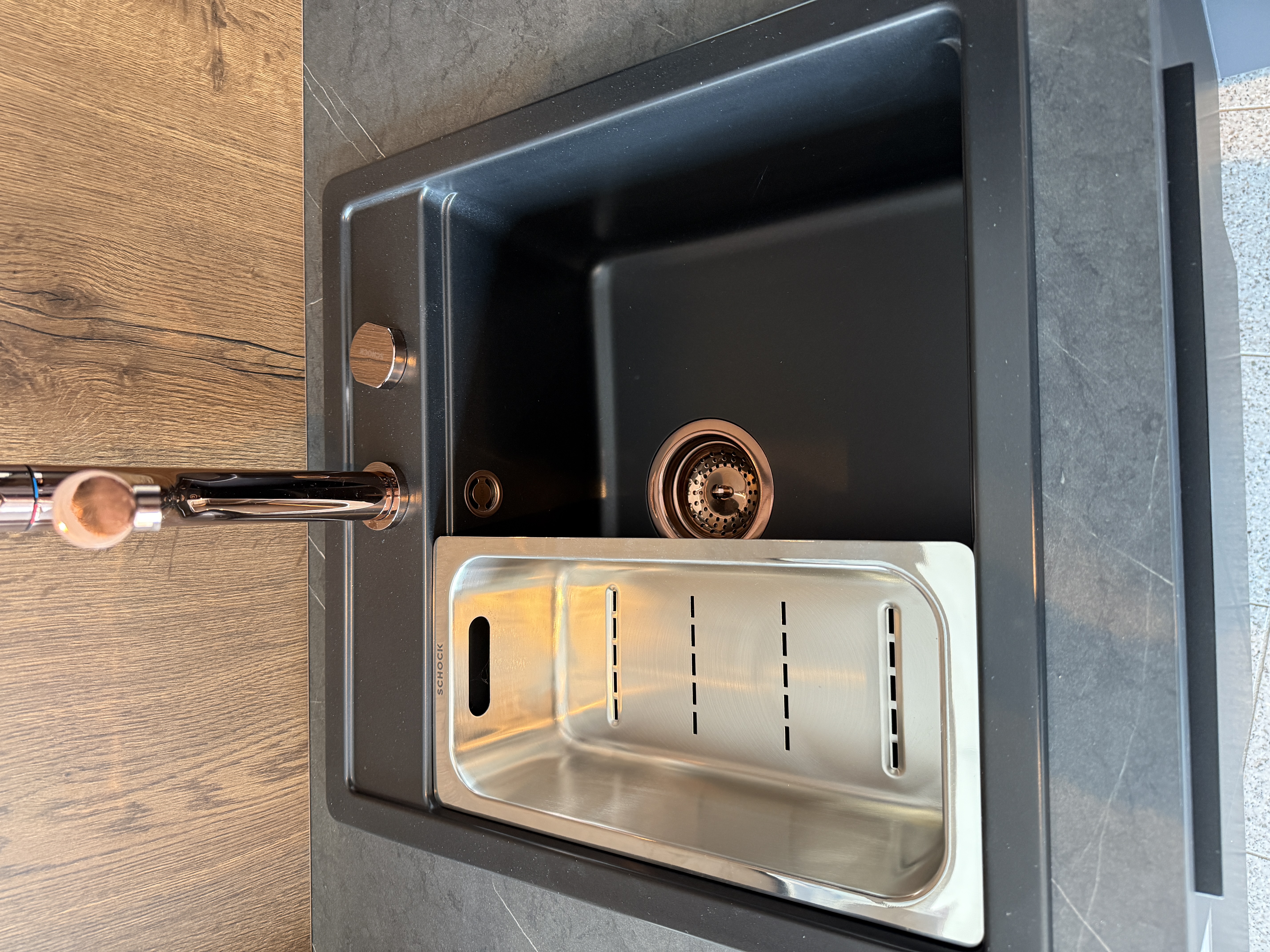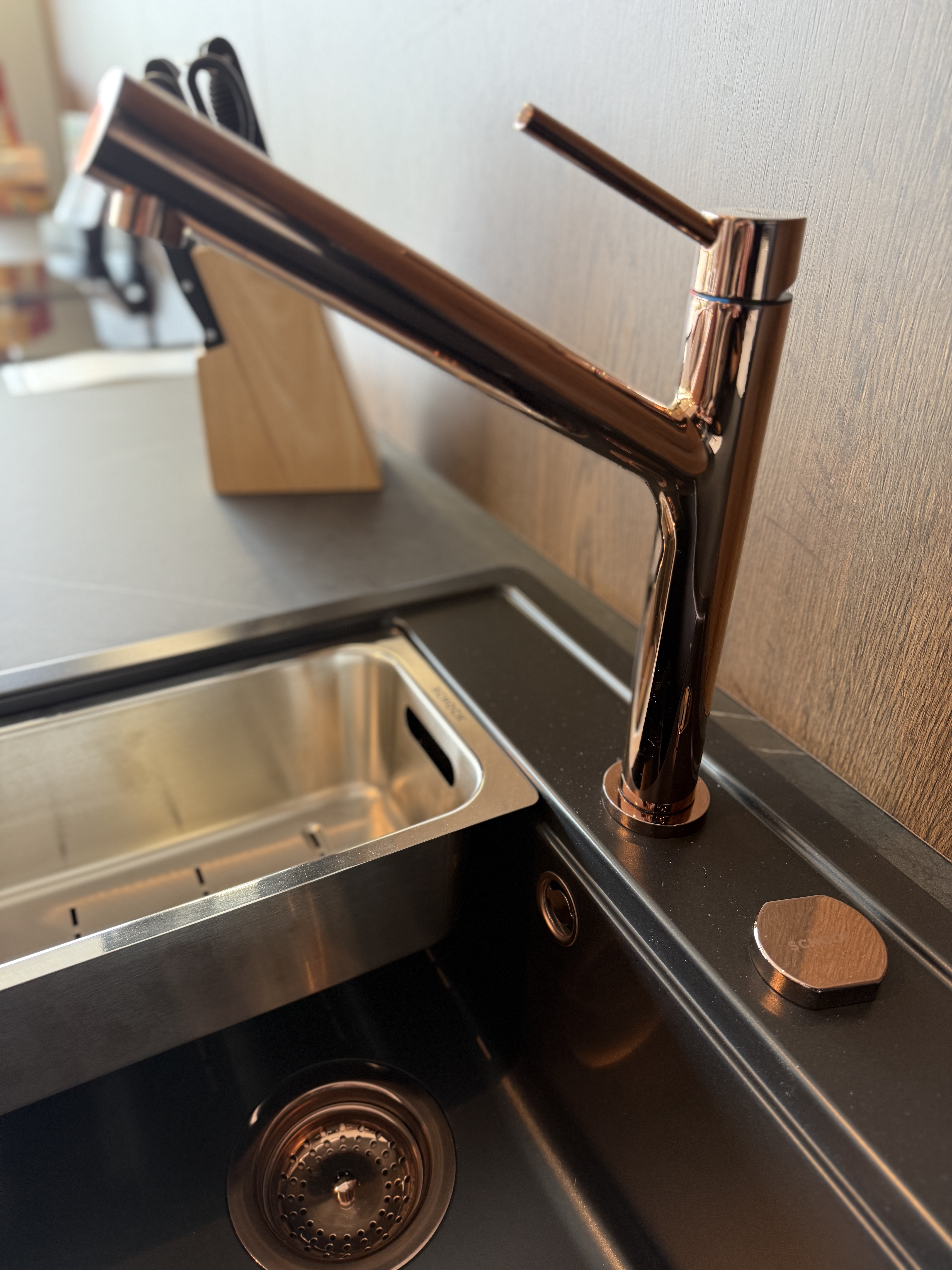 Schwarze Spüle & edler Copper-Mischer von Schock