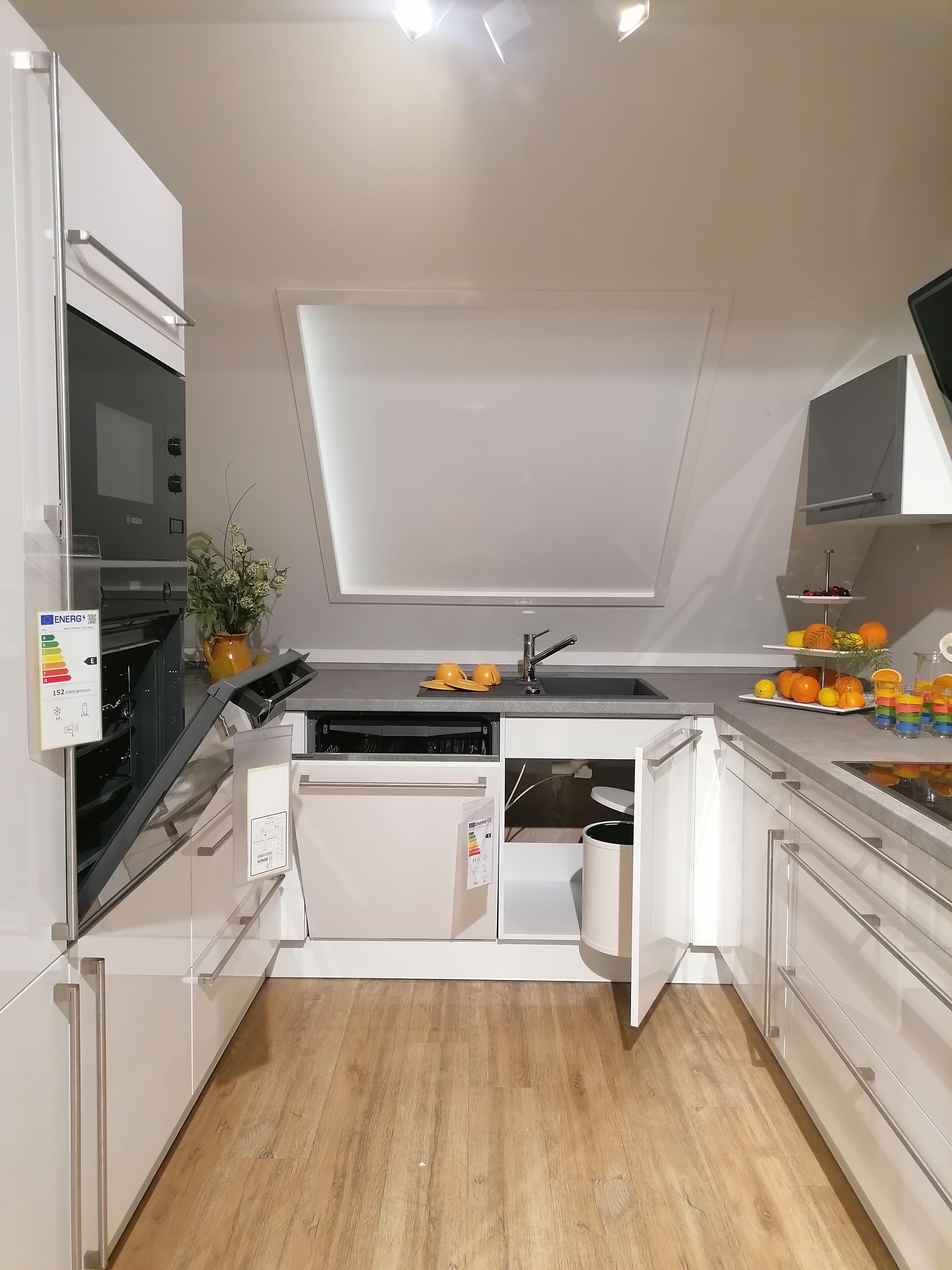 schöne Aufteilung ist diese Küche ebenfalls für eine Dachschräge geeignet. Der Backofen und die Mikrowelle sind hochgesetzt.