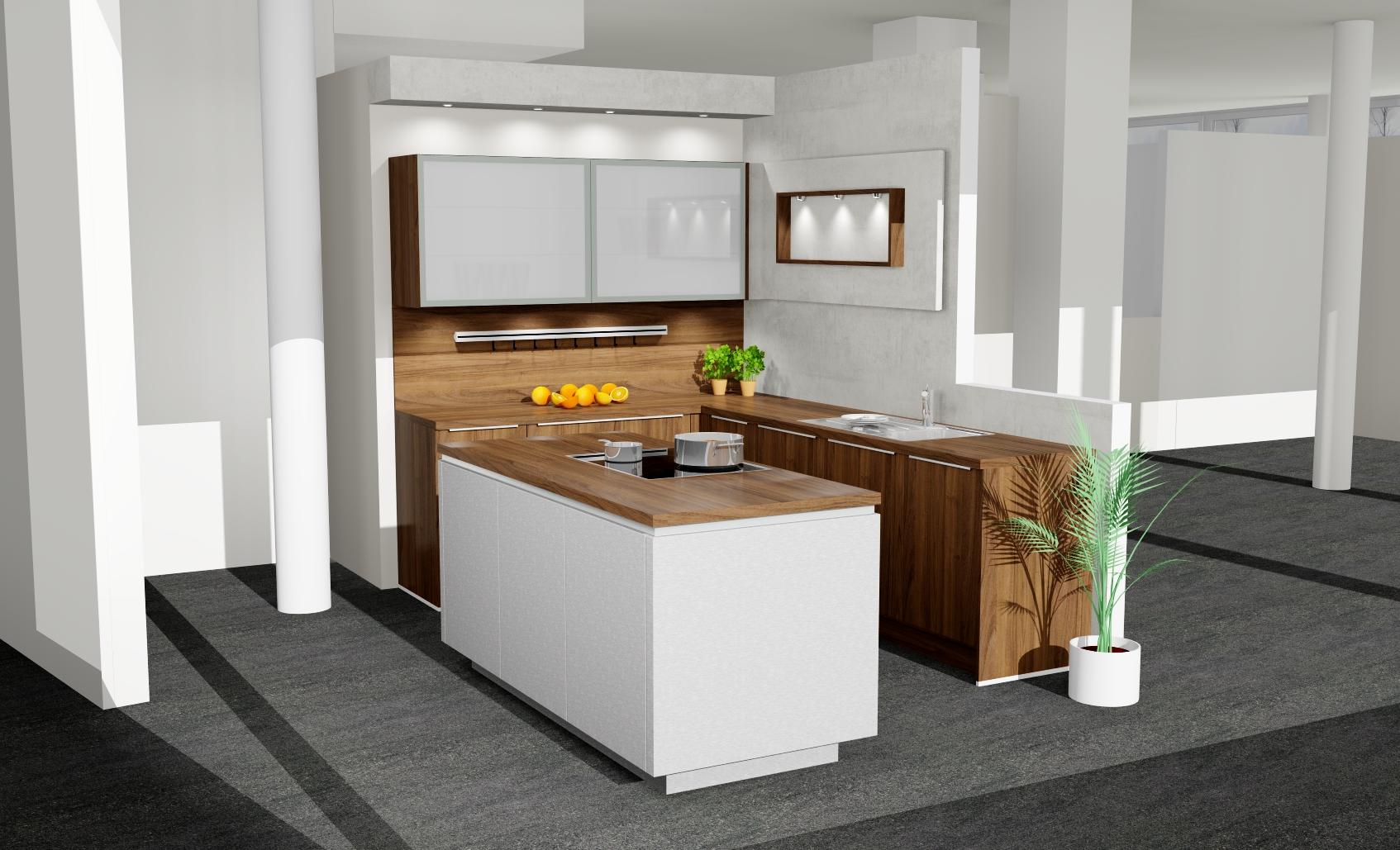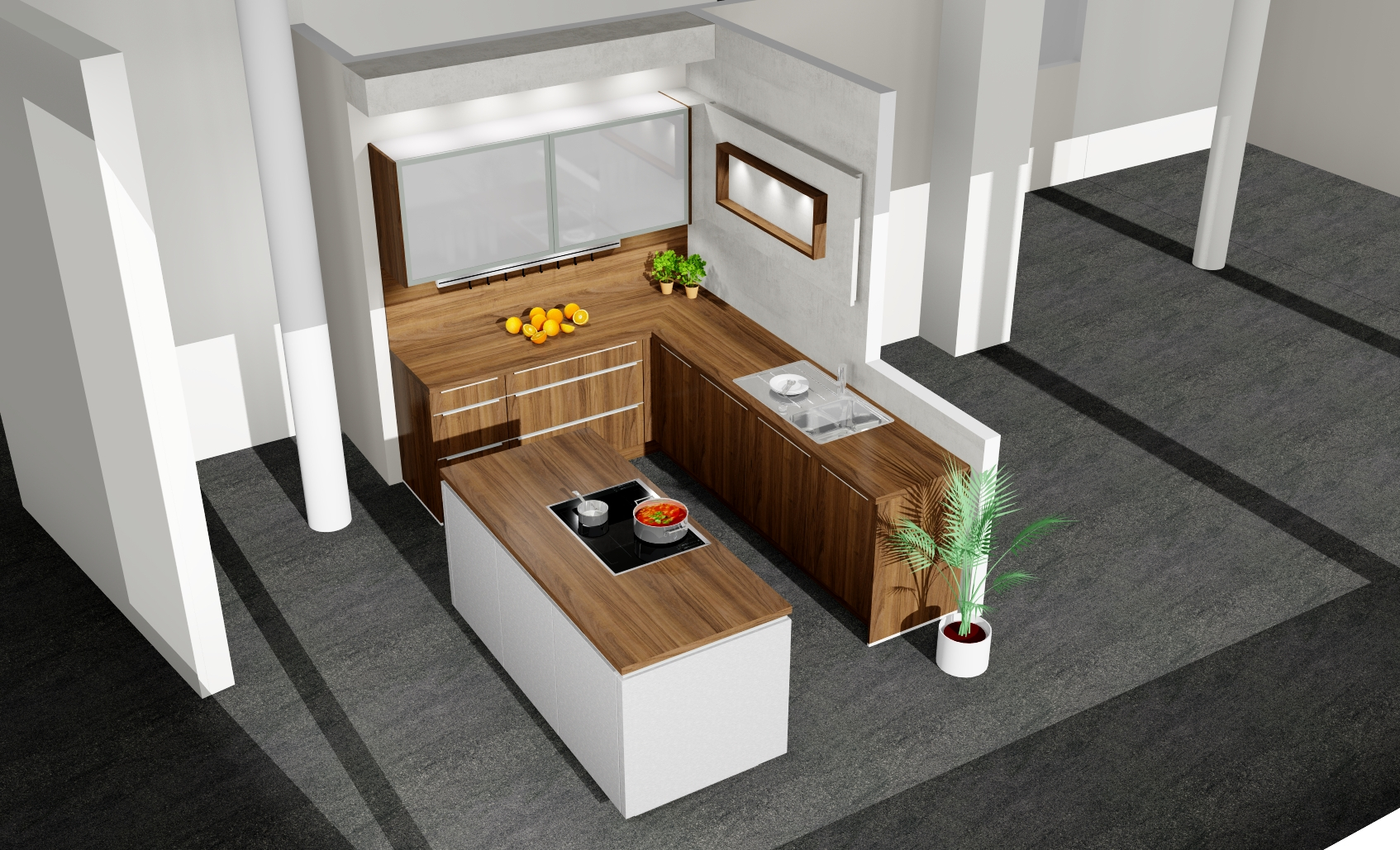 🍳 Zentrale Kochinsel mit integriertem Kochfeld & Abzug (Um- oder Abluft möglich)