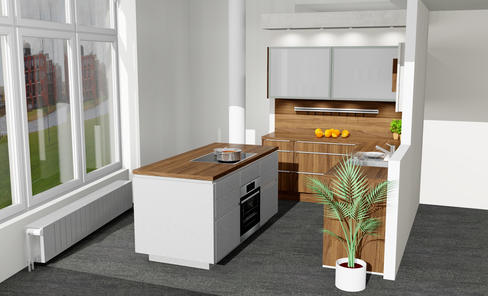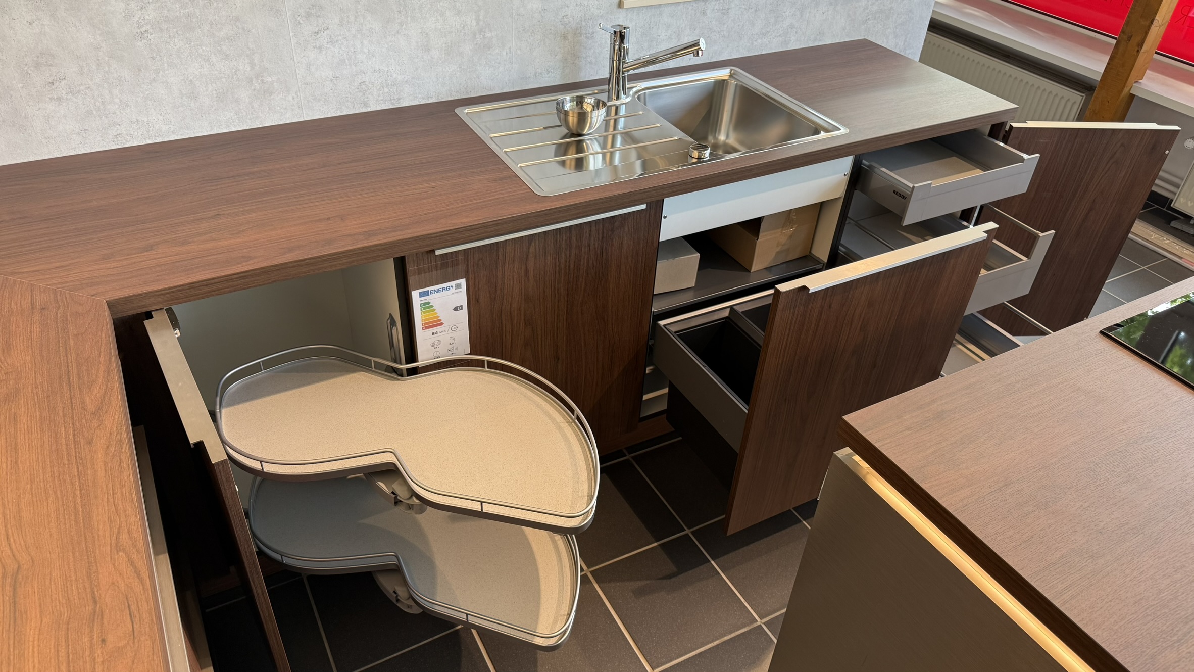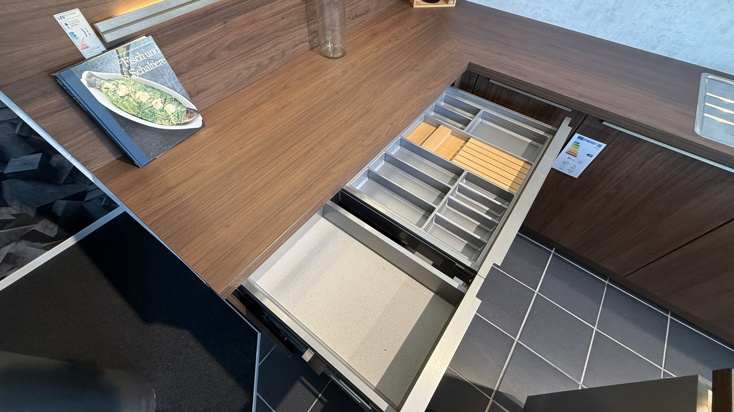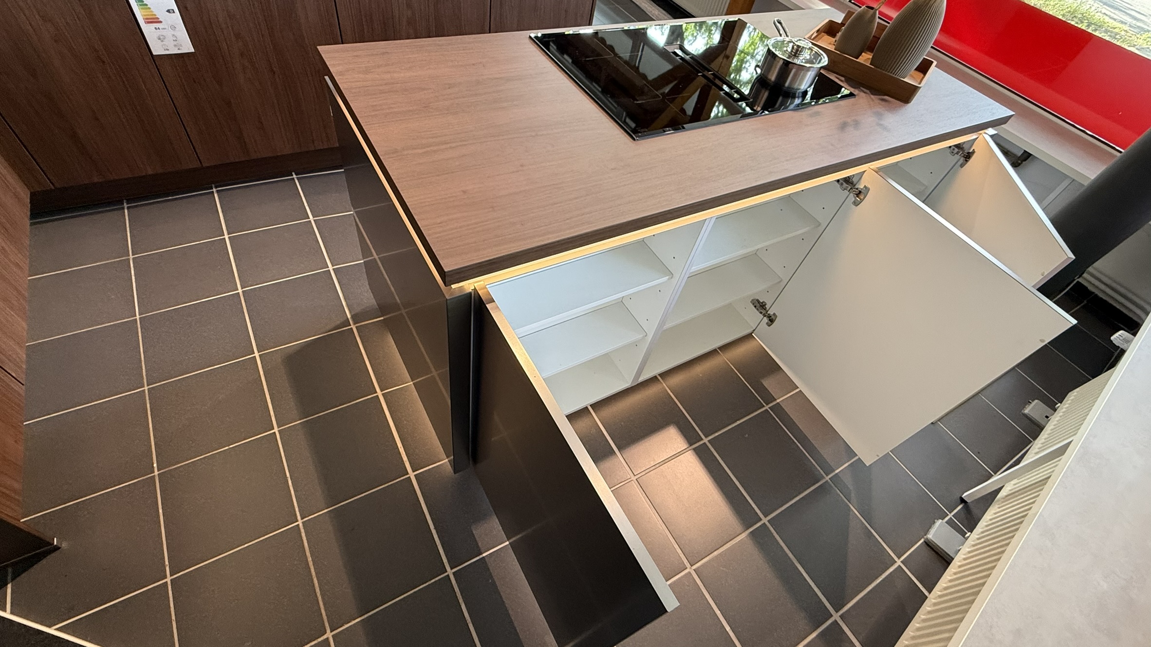 - Große Arbeitsfläche sowie Stauraum in der Insel
