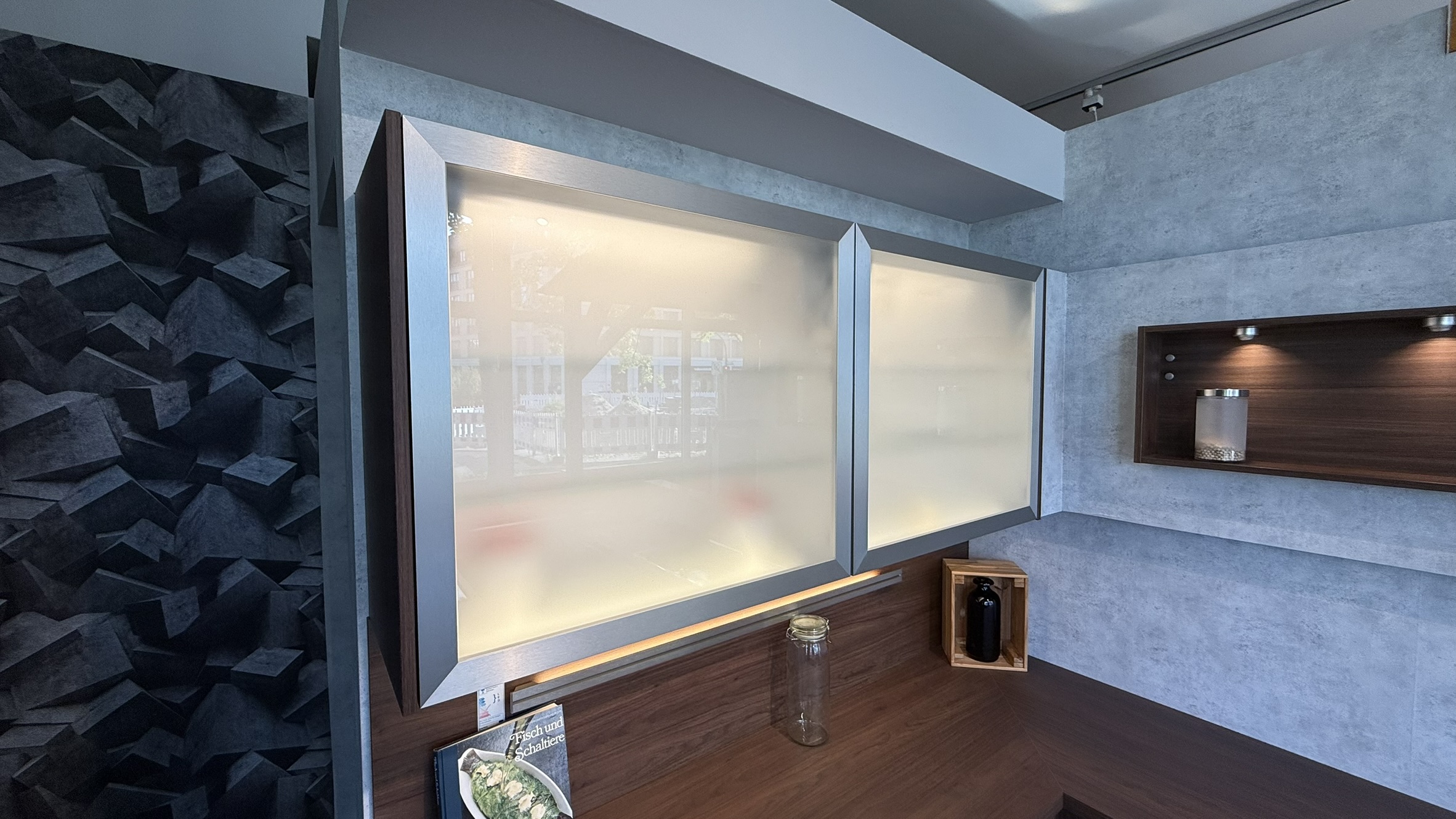 - Matt hinterleuchtete Glasfronten sorgen für eine elegante, diffuse Beleuchtung