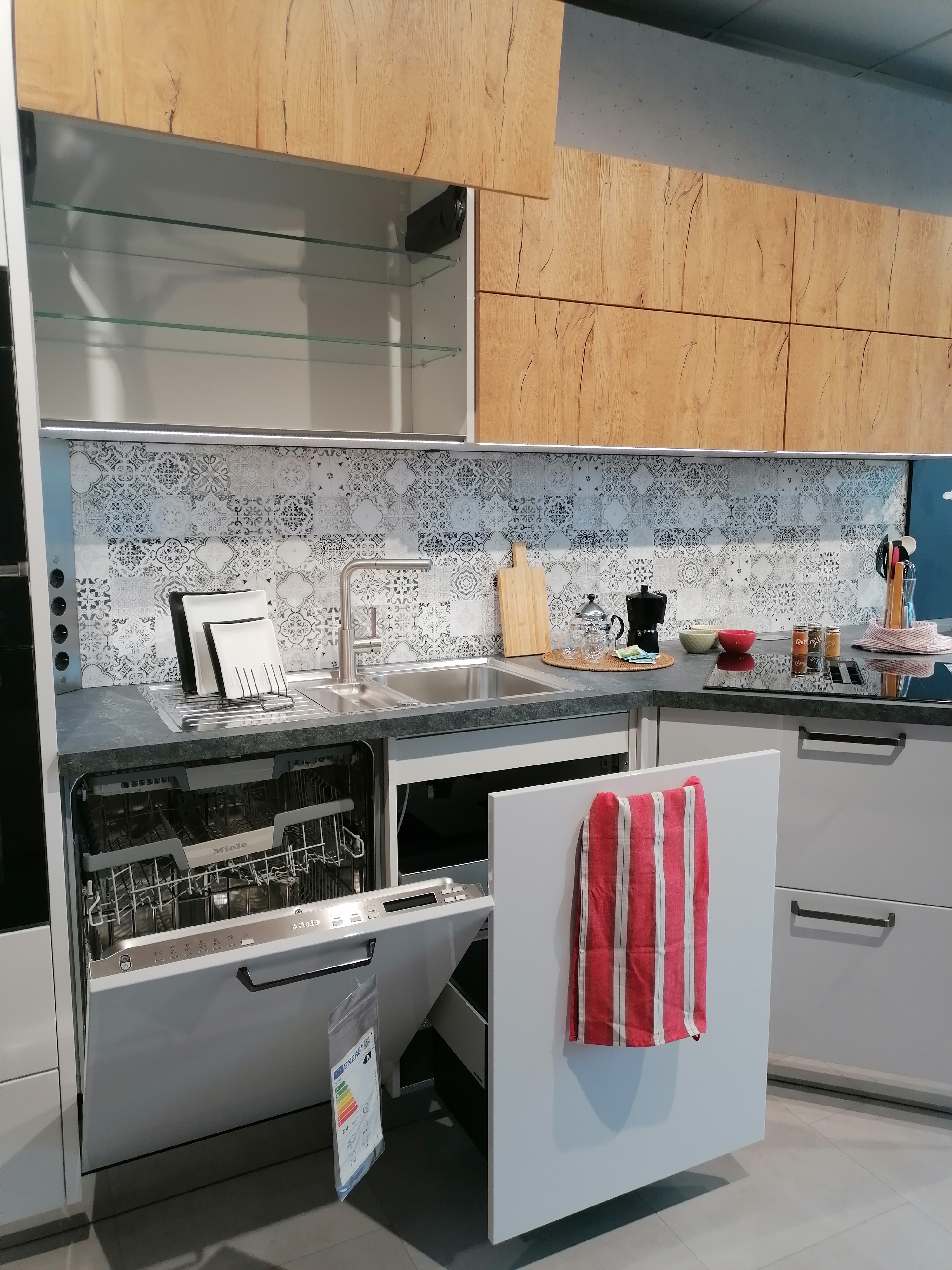 Eyecatcher ist die Rückwand im Retro Fliesenstyle und eine Kreidetafel zum beschriften, designen oder Kochrezepte, ganz w...