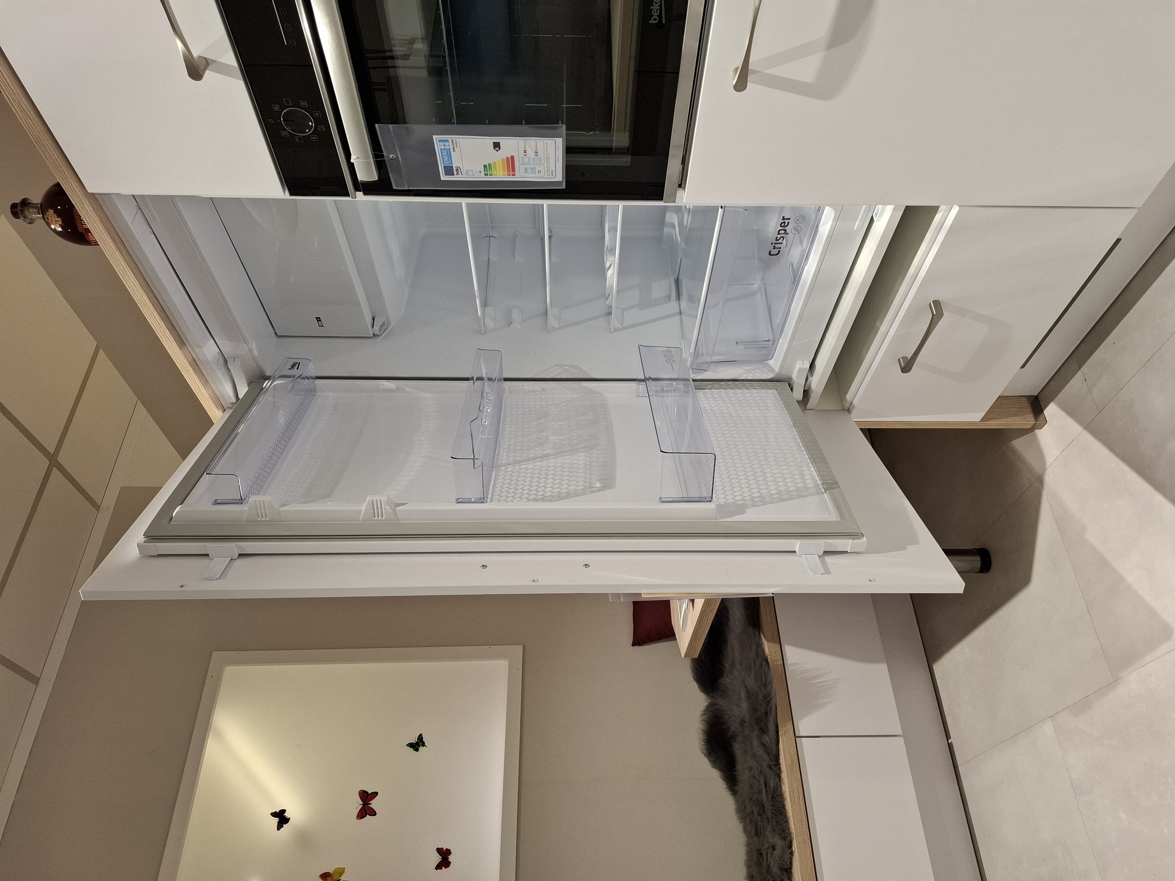 es handelt sich hierbei um eine vollausgestattete Küche. Im Küchenumfang sind Elektrogeräte von Bosch und Beko enthalten, sowie ein Mülltrennsystem