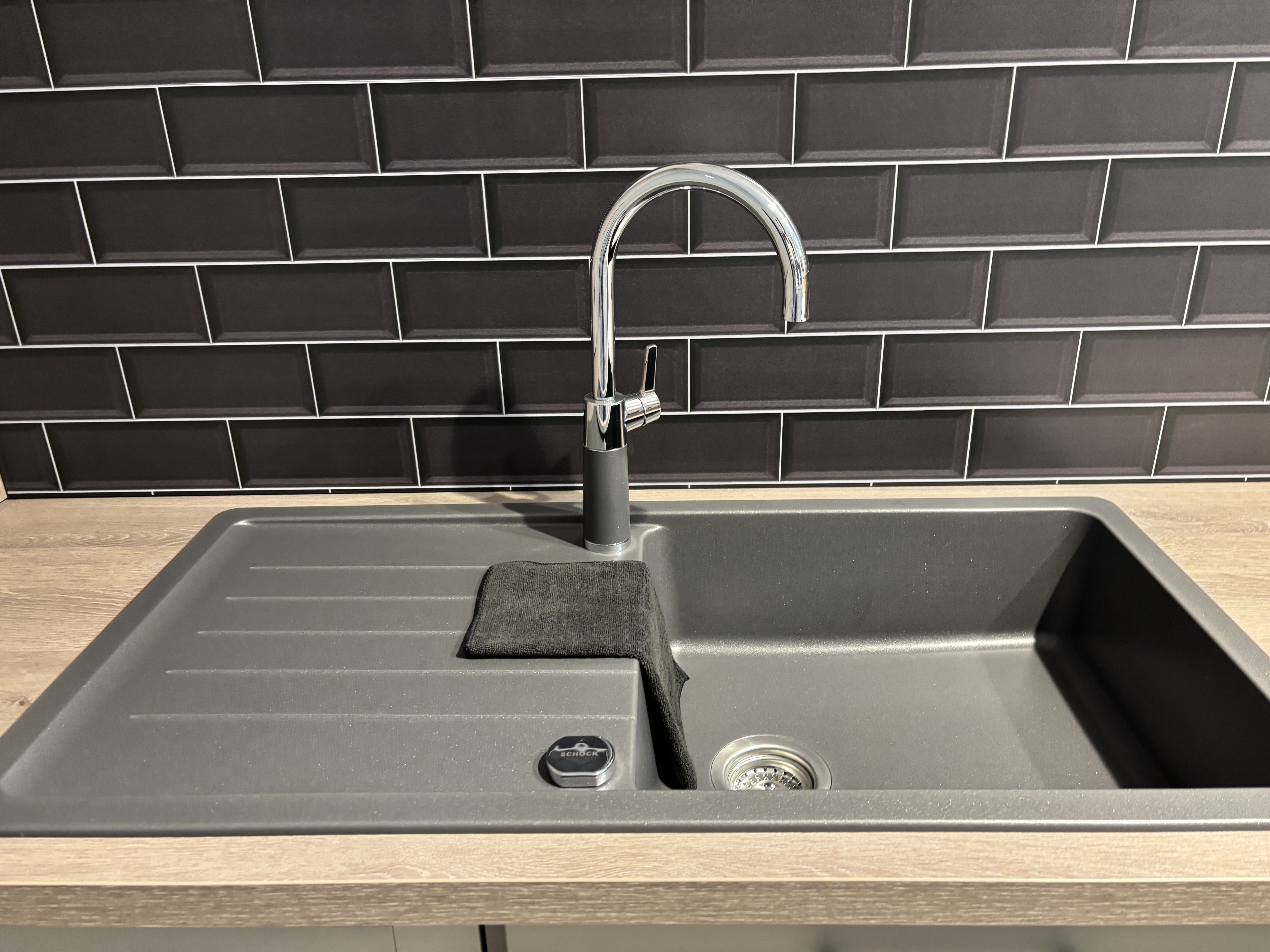 Die Spüle und Armatur in Silverstone fügen sich sehr gut ins Gesamtbild ei...
