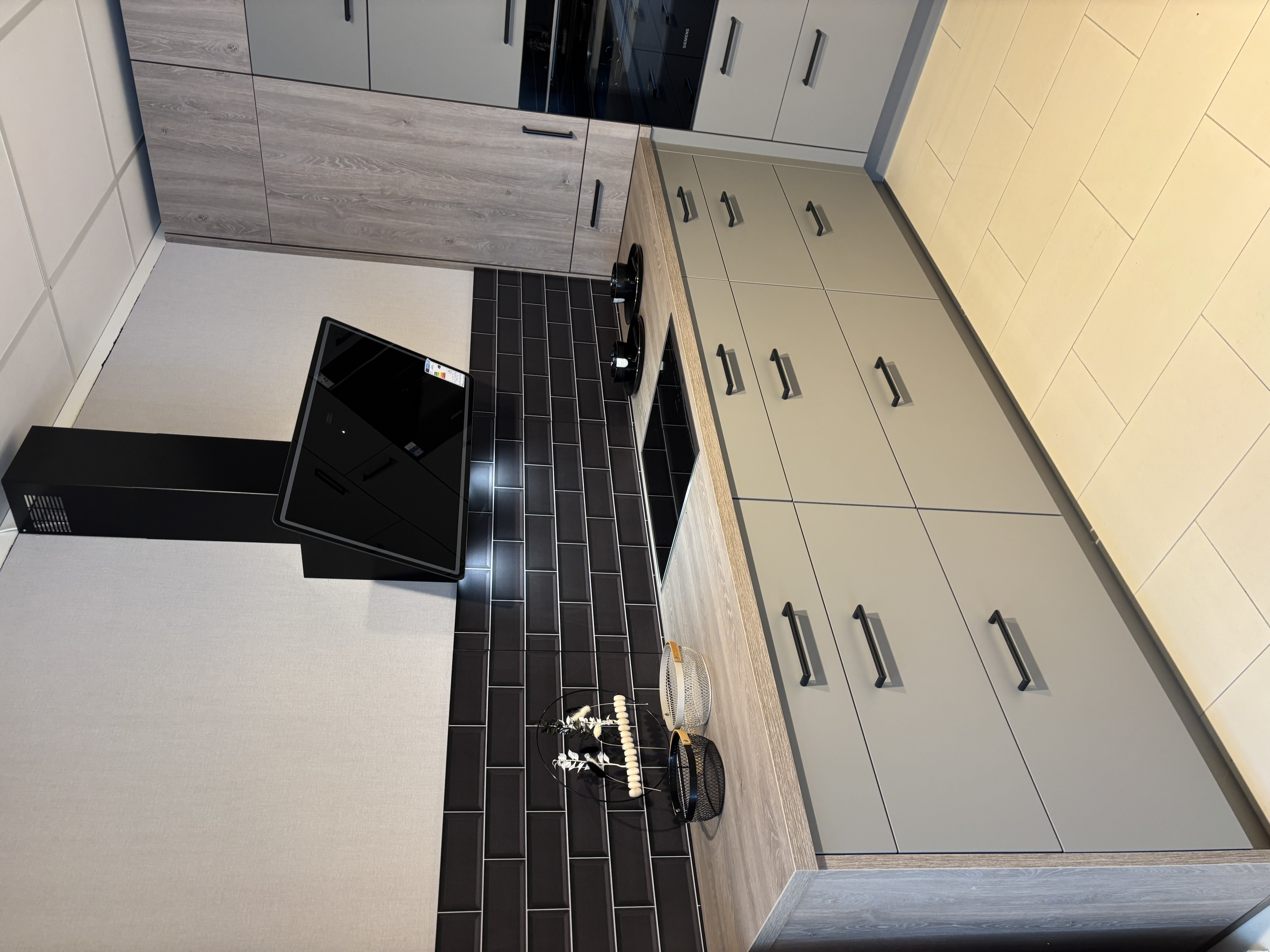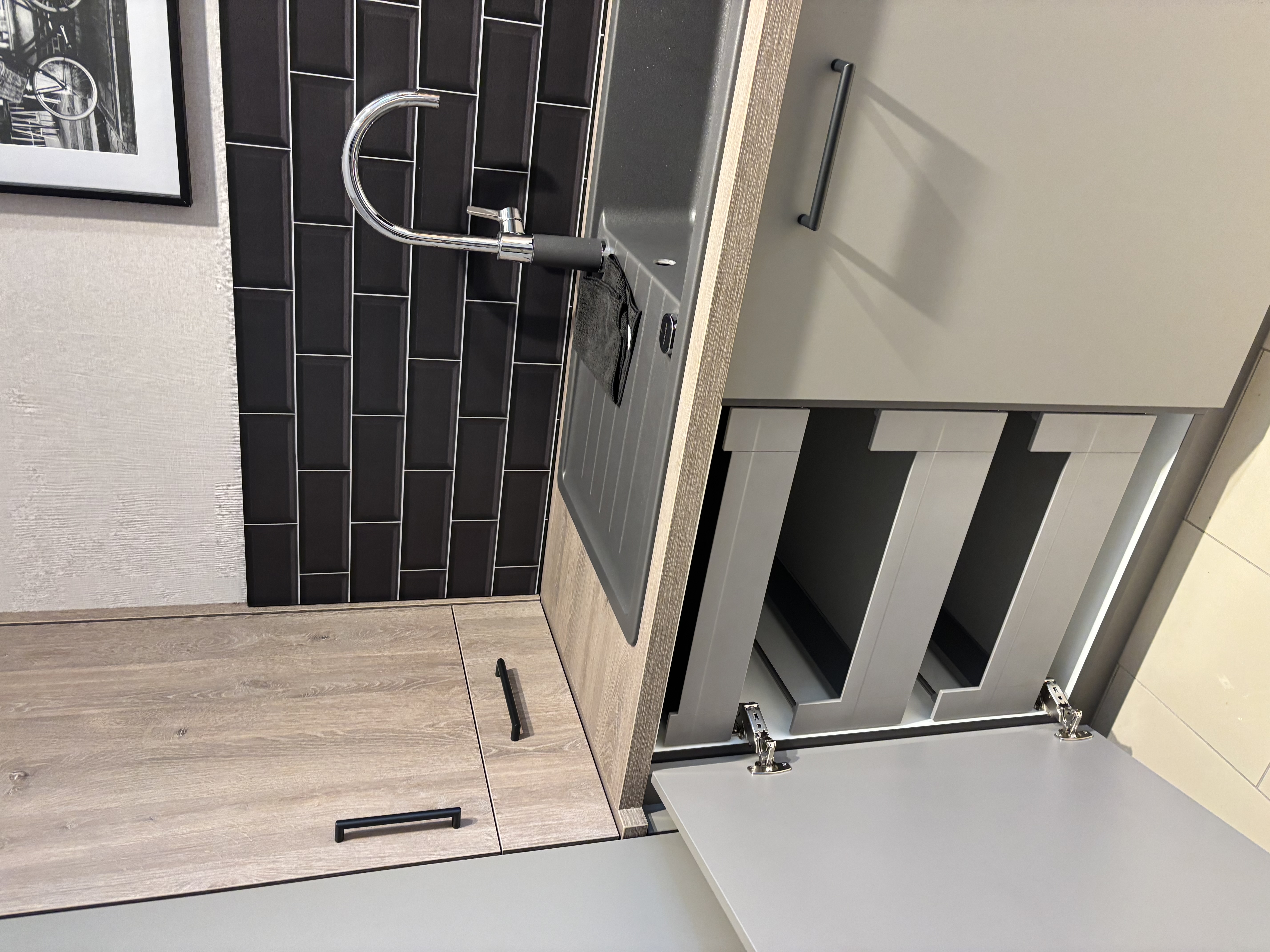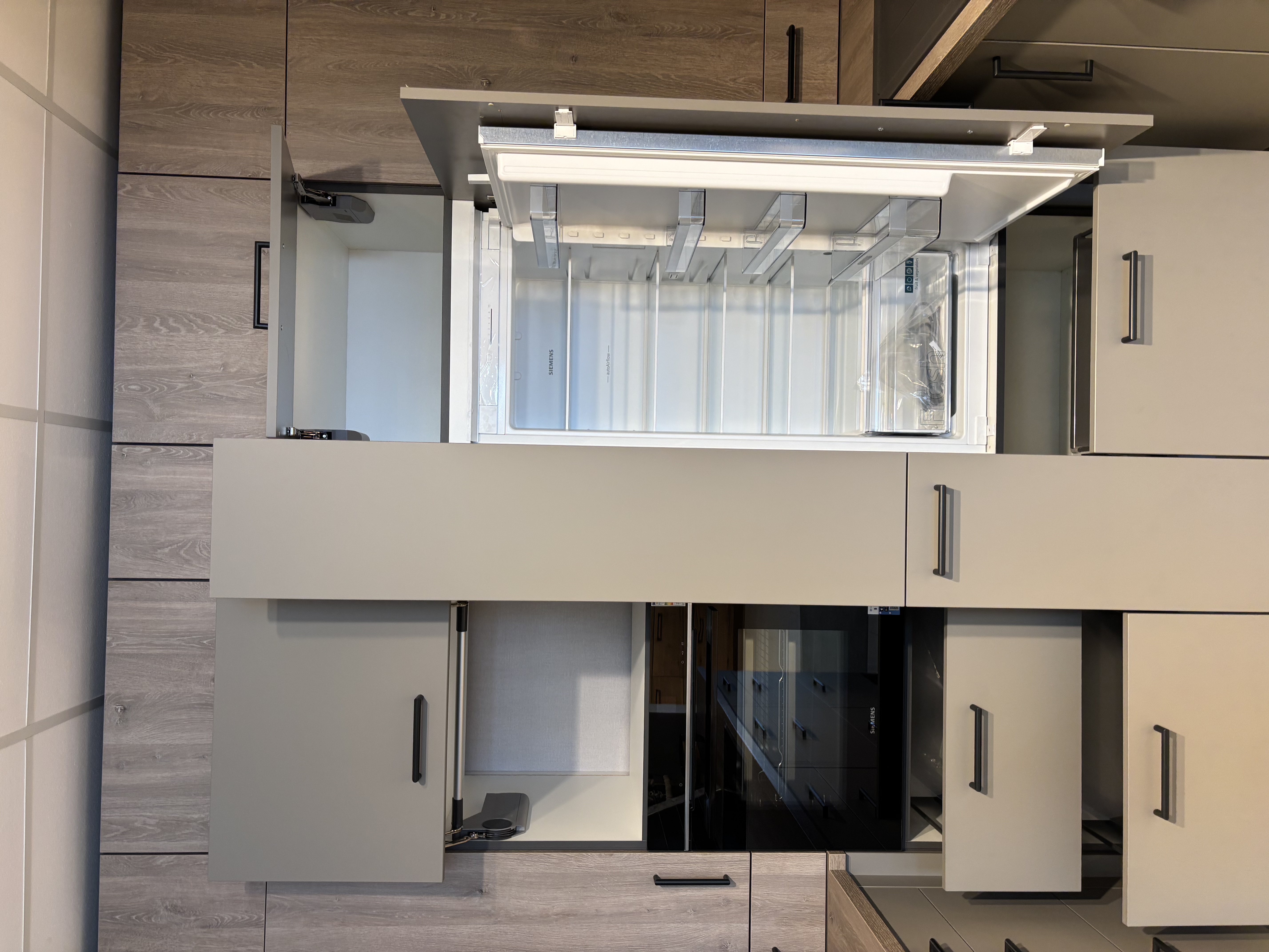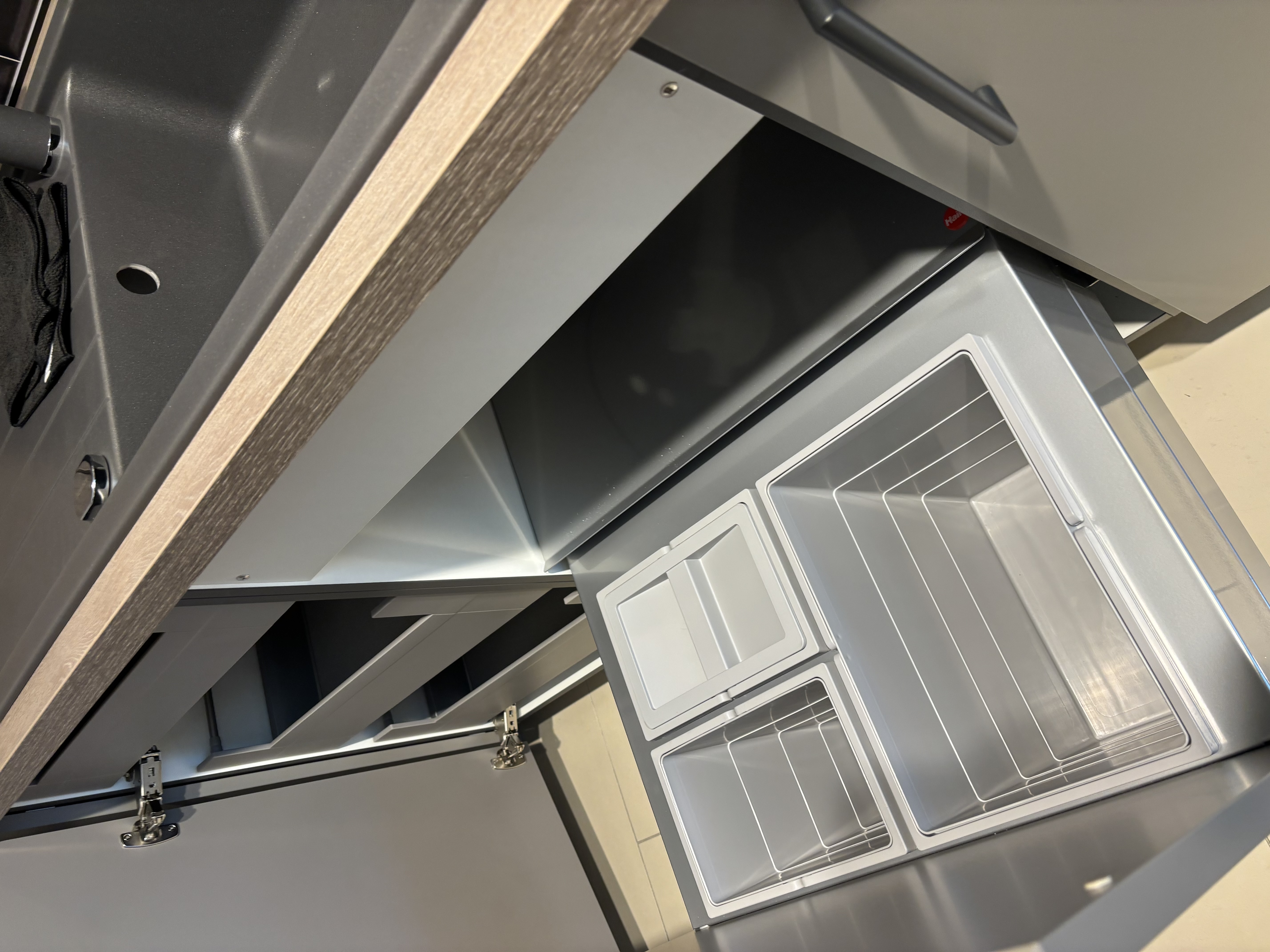 Der XL Korpus, die Auszüge und der hohe Apothekerschrank sorgen für max. Unterbringungsmöglichkeiten.