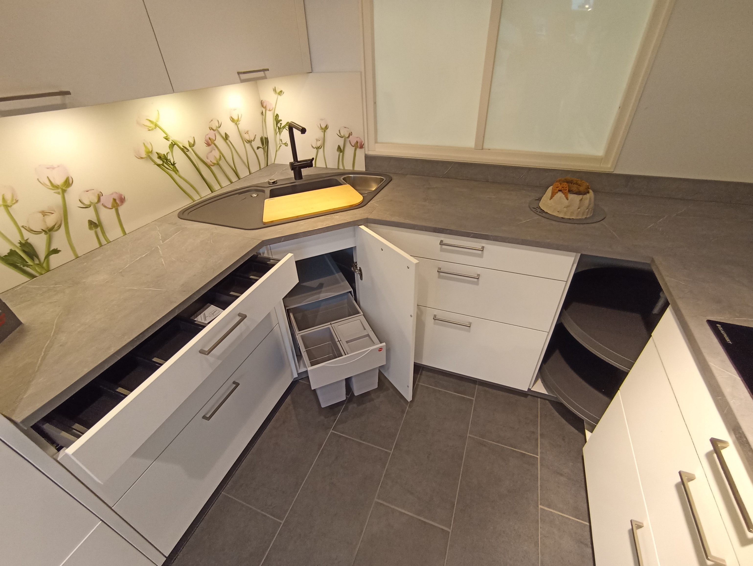 Diese Küche bieten wir zu einem absoluten TOP-Preis, da wir für diese Musterkoje bereits eine neue Ausstellungsküche geordert haben und diesen Platz benötigen.