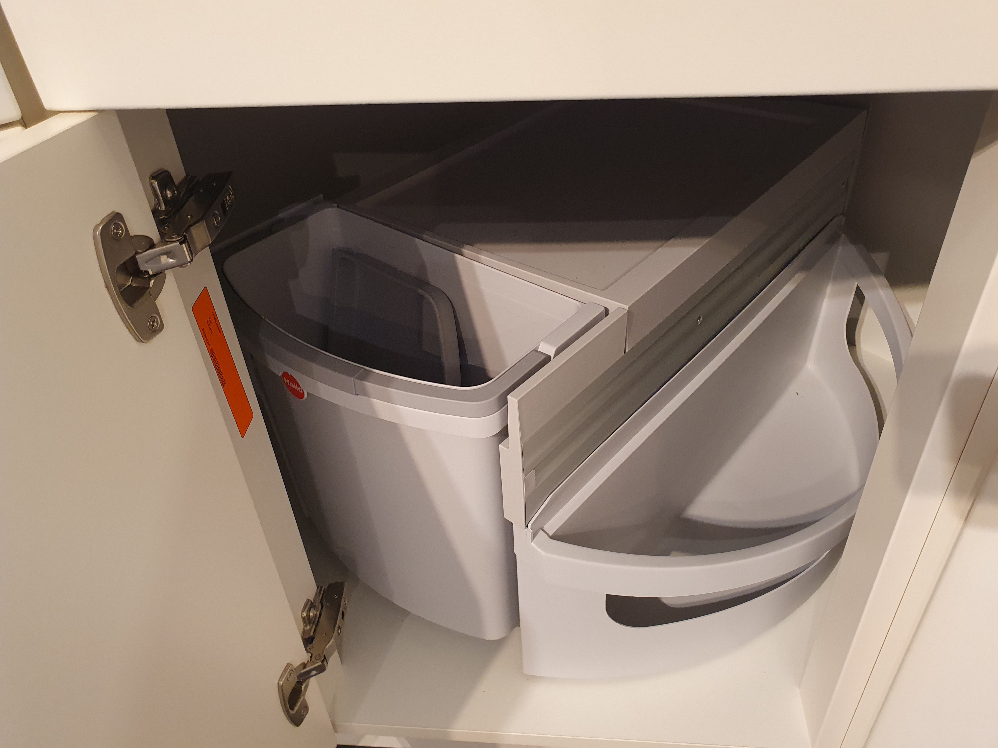 AS4378 Einbau-Abfallsammler Rondo, drehbar 3 Kunststoff-Behälter als Vollauszug, Inhalt: 1 x 18 Liter, 2 x 8,5 Liter,