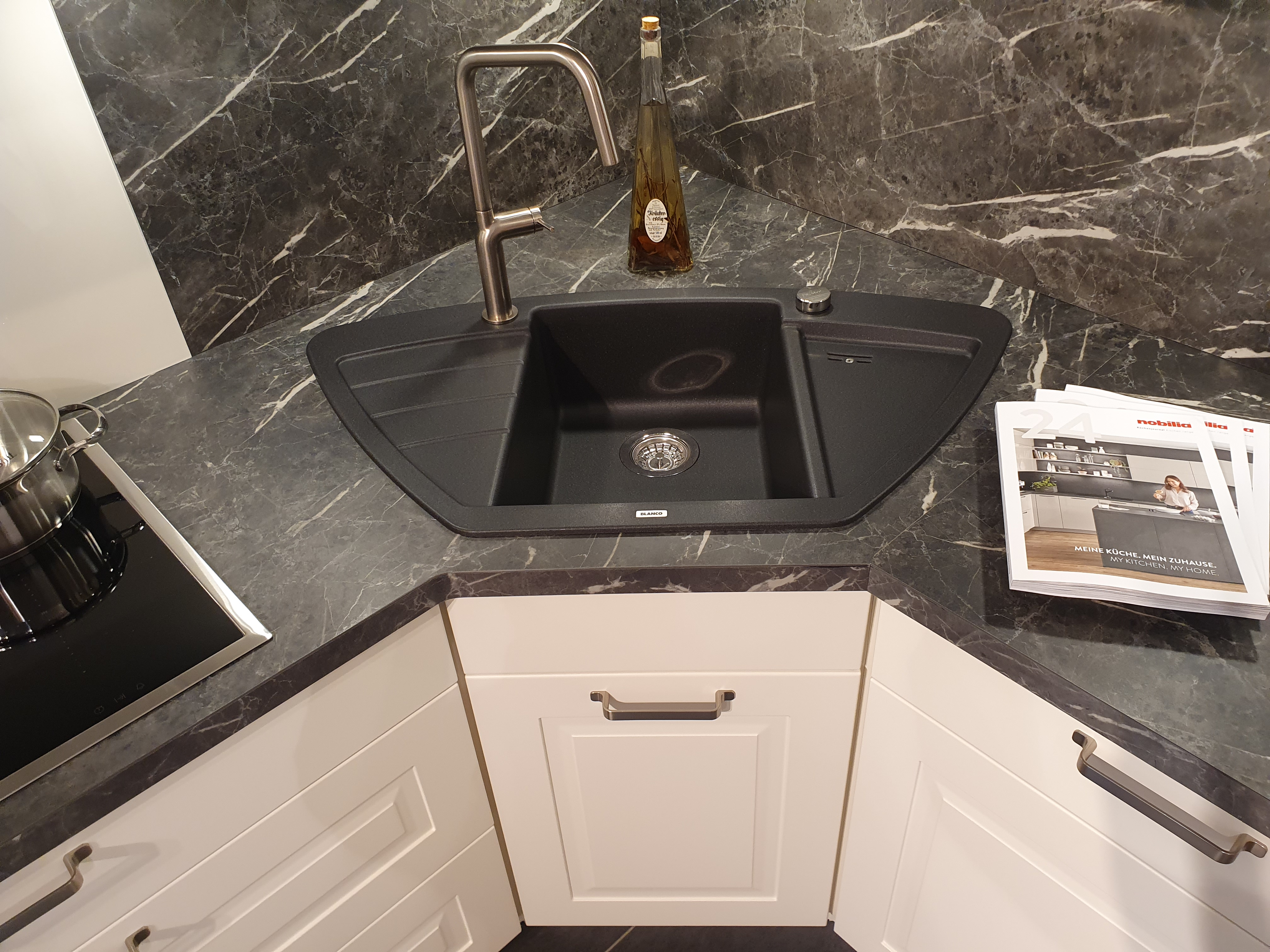87451 BLANCO ZIA 9 E SILGRANIT anthrazit Einbauspüle mit Ablauffernbedienung Untermaß: 60 cm Eckmaß: 90 x 90 cm Zeilenmaß: 60 cm Lieferumfang: Ablaufgarnitur mit Raumsparrohr, 3 1/2'' Korbventil mit Ablauffernbedienung