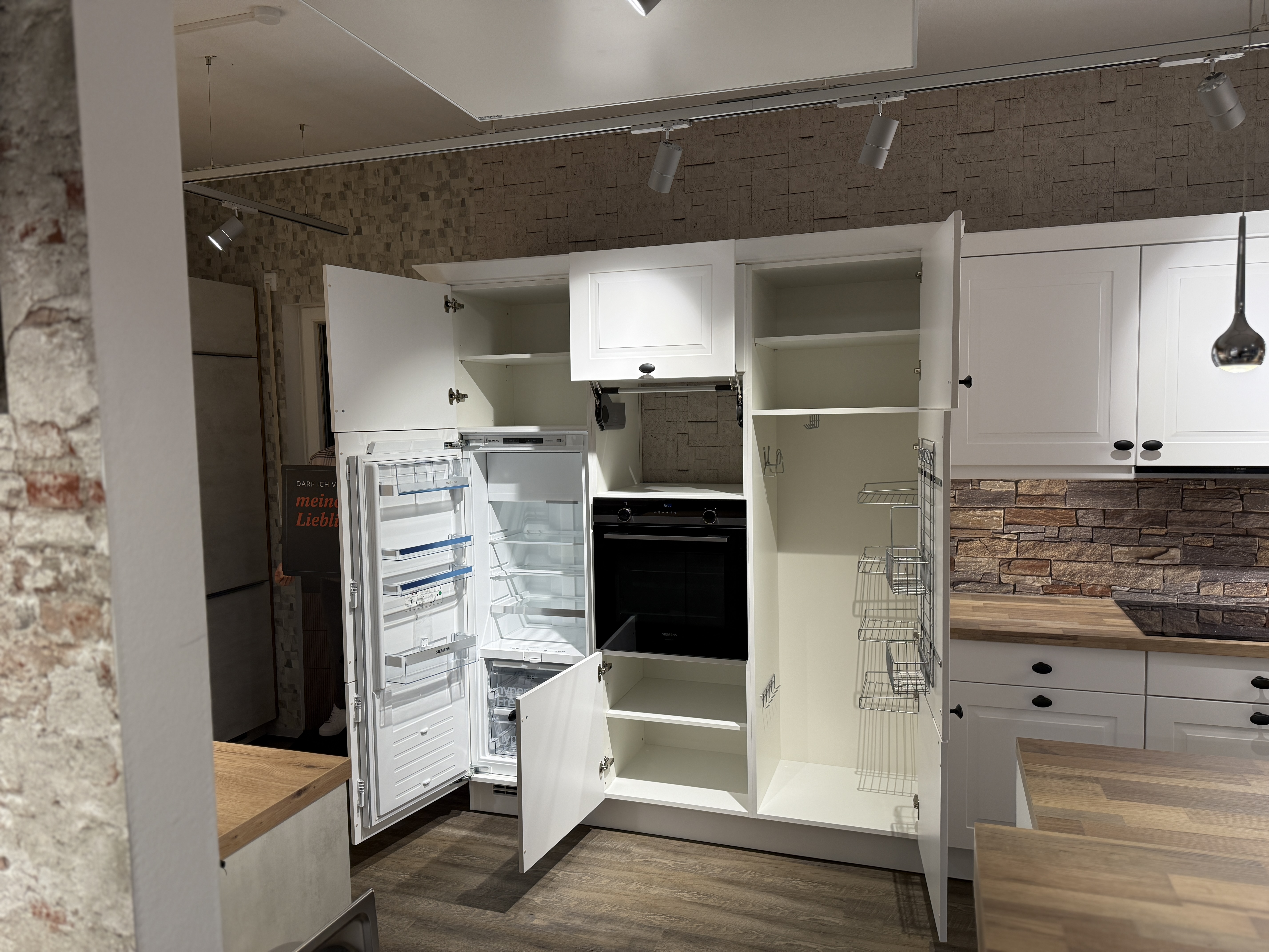 Ausgestattet mit hochwertigen Elektrogeräten, Spüle und Armatur, bietet diese Musterküche alles, was Sie für den täglichen Gebrauch benötigen. Ideal für alle, die Qualität, Stil und ein harmonisches Gesamtbild schätzen.