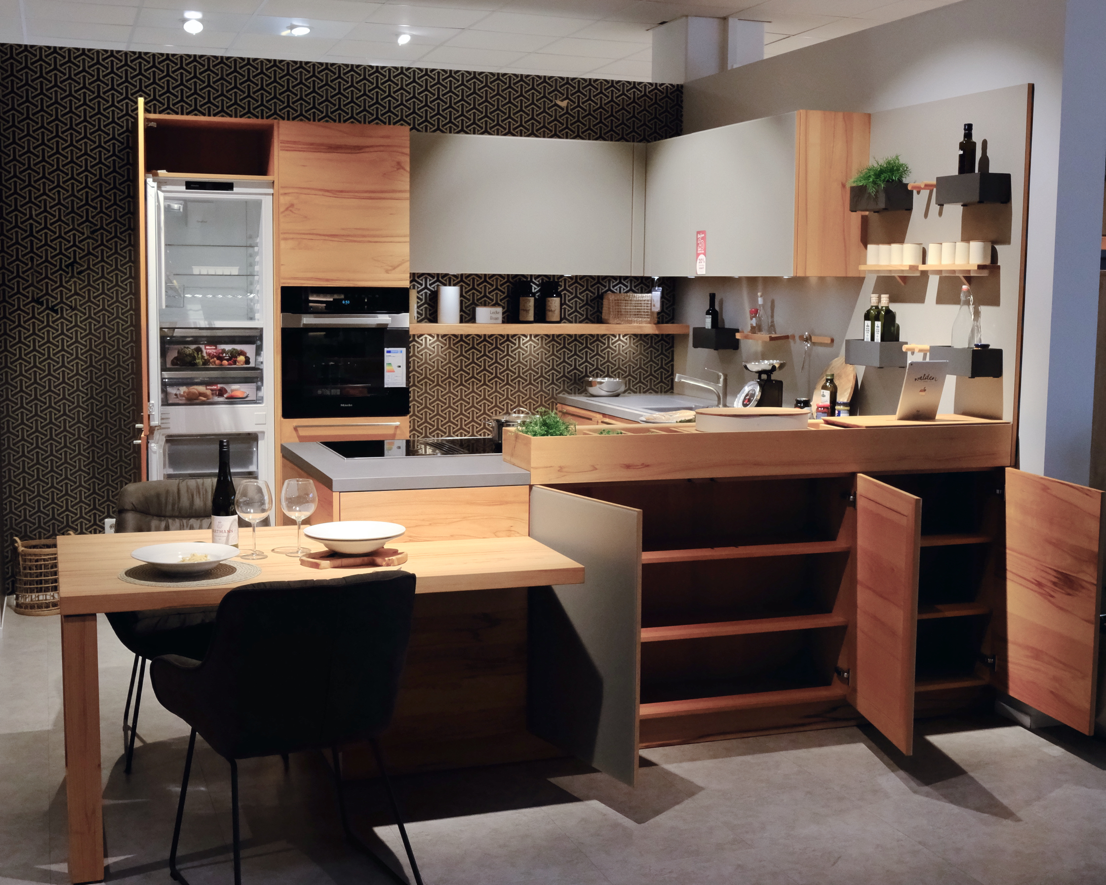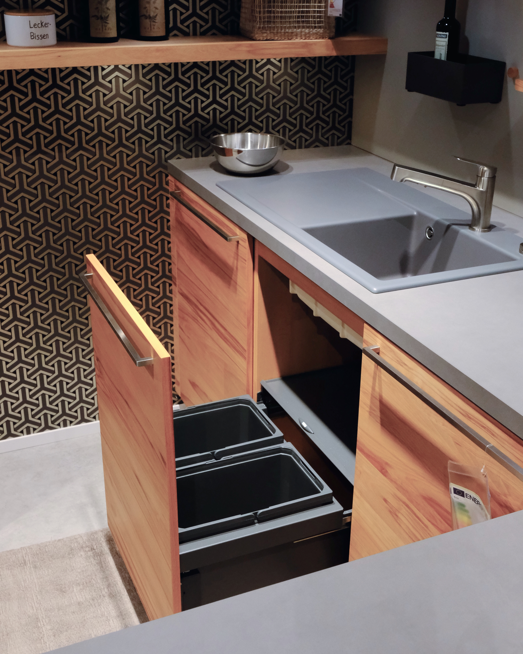 Diese Einbauküche ist die perfekte Wahl für alle, die Wert auf Design, Funktionalität und Nachhaltigkeit legen. Die Kombination aus edlem Holz, innovativen Materialien und leistungsstarker Technik macht sie zu einem echten Hingucker und sorgt für eine optimale Nutzung in Ihrem Zuhause.