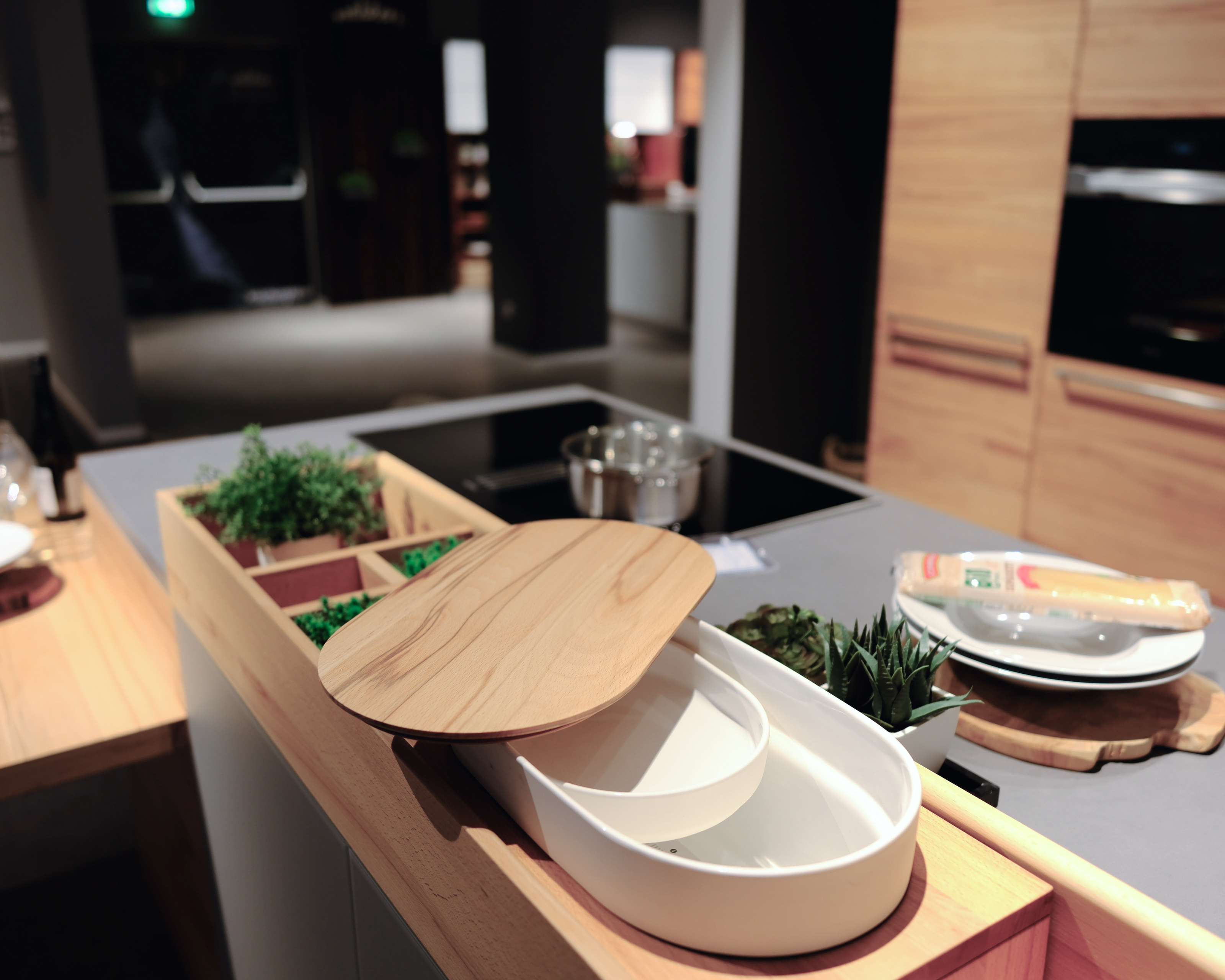 Die Walden Einbauküche kombiniert natürliche Materialien und moderne Technik zu einem Meisterwerk der Küchenkunst. Der Korpus aus massivem Kernbuche verleiht der Küche eine warme, natürliche Ausstrahlung und sorgt für eine besonders hohe Stabilität. Das edle Holz in Kombination mit der robusten Ceramic Arbeitsplatte setzt einen eleganten Akzent und ist gleichzeitig pflegeleicht und widerstandsfähig.
