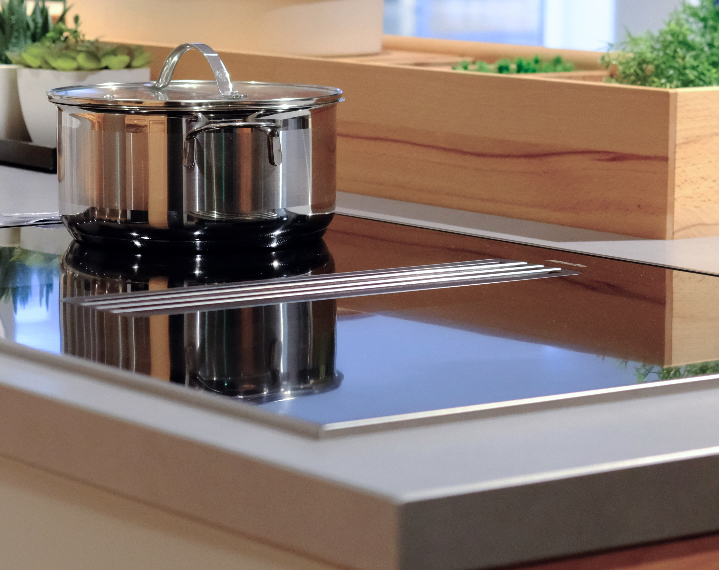 Die Stangengriffe GR04 aus hochwertigem Edelstahl bieten nicht nur eine zeitgemäße Optik, sondern auch eine ergonomische Handhabung. Der Sockel mit einer Höhe von 11 cm rundet das Design perfekt ab und verleiht der Küche eine klare, moderne Linienführung.