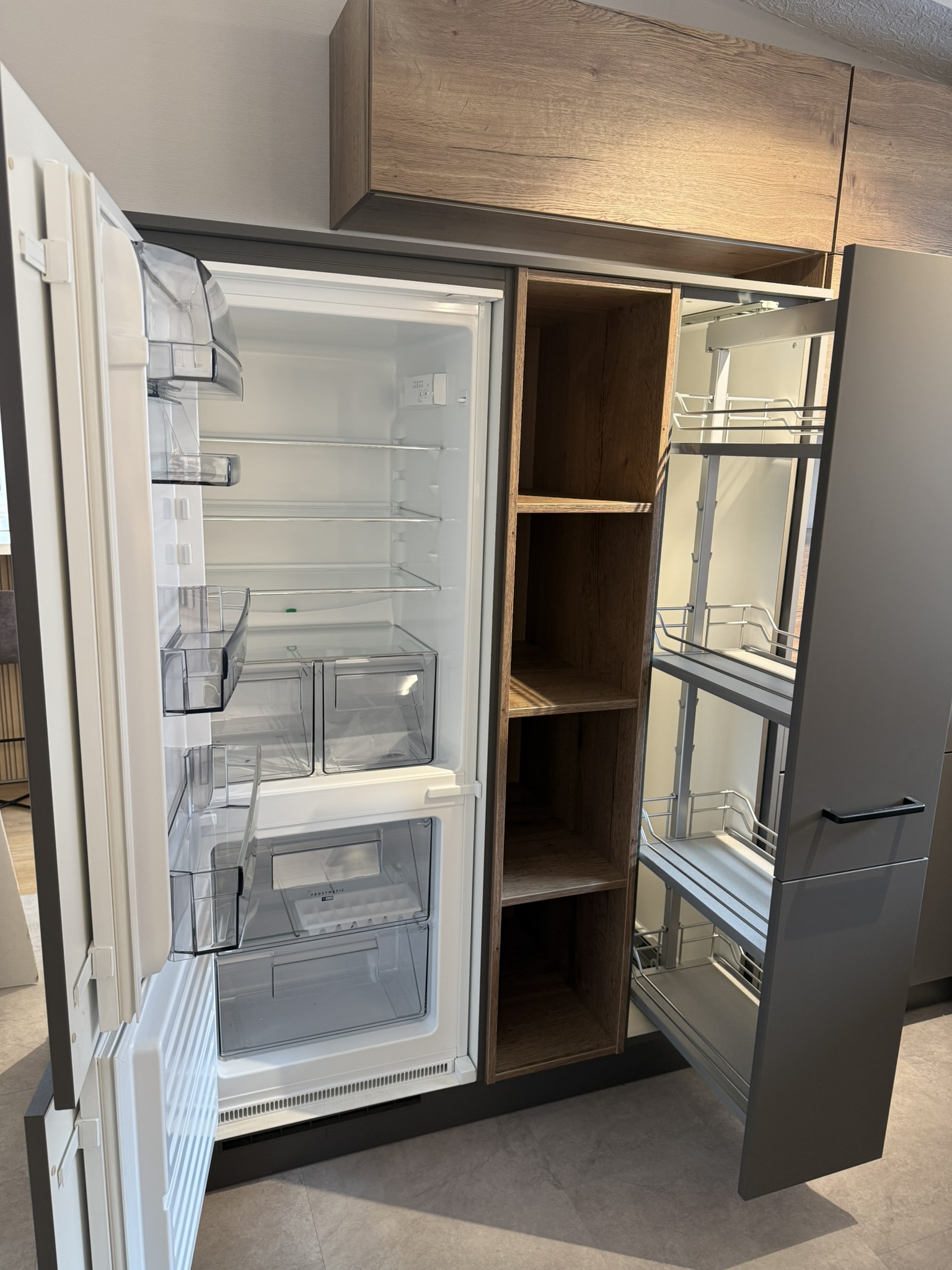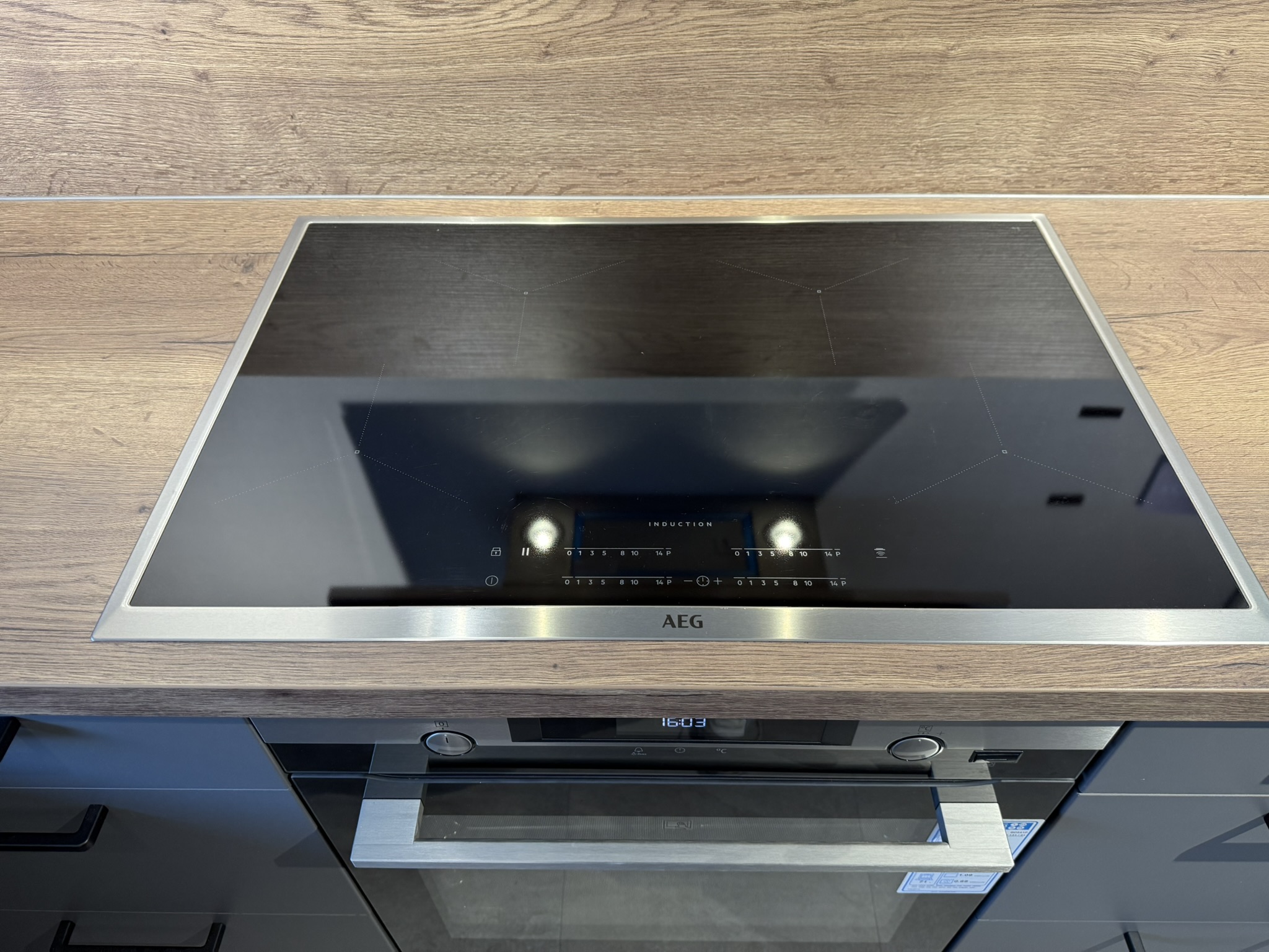 Zum Verkauf steht eine stilvolle, moderne Einbauküche in U- Form mit hochwertiger Ausstattung und viel Stauraum. Die Küche überzeugt durch ihre elegantes Design in Anthrazit mit warmen Holz- Akzenten und bietet sowohl funktional, als auch optisch ein echtes Highlight für jedes Zuhause.
